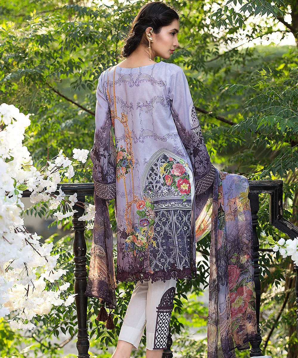 Fabric: Embroidered Front Printed Back Printed Sleeves Embroidered Front and Back Border Patch Embroidered Sleeves Patch Dyed Trouser Printed Chiffon Dupatta |