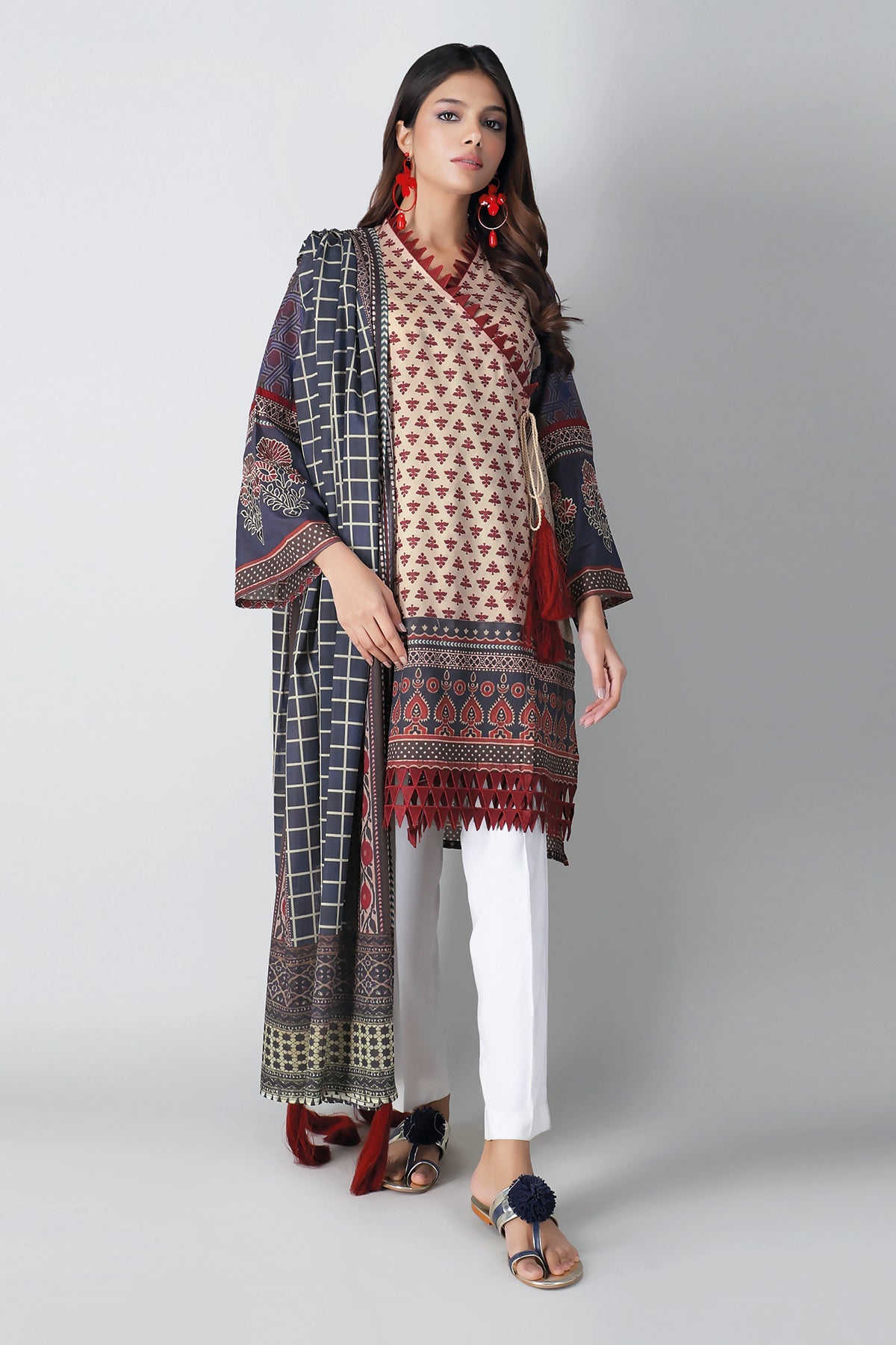 Khaadi Spring Collection 2021 – 2PC Suit · Embroidered Kameez Dupatta · M21103 Beige