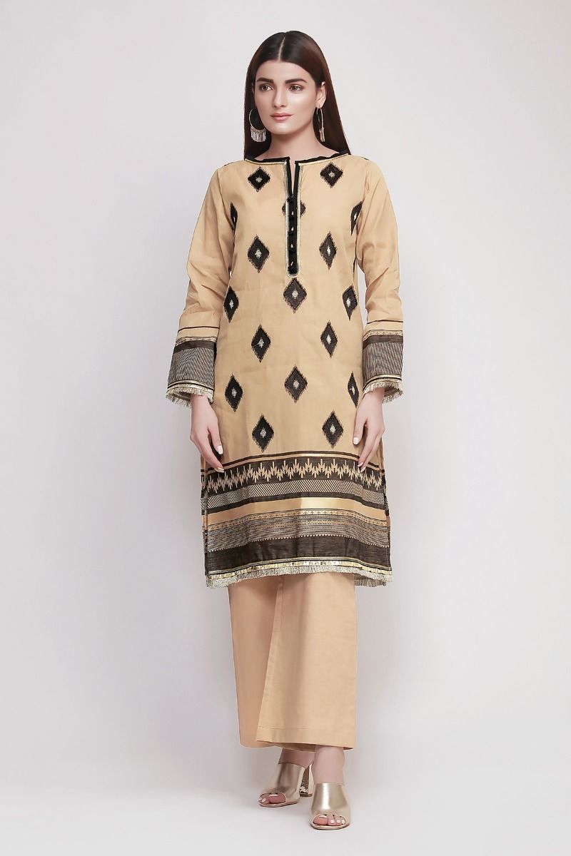 Fabric: Embroidered Jacquard Shirt 3.0m Shalwar 2.5m Material: Lawn Color: Beige |