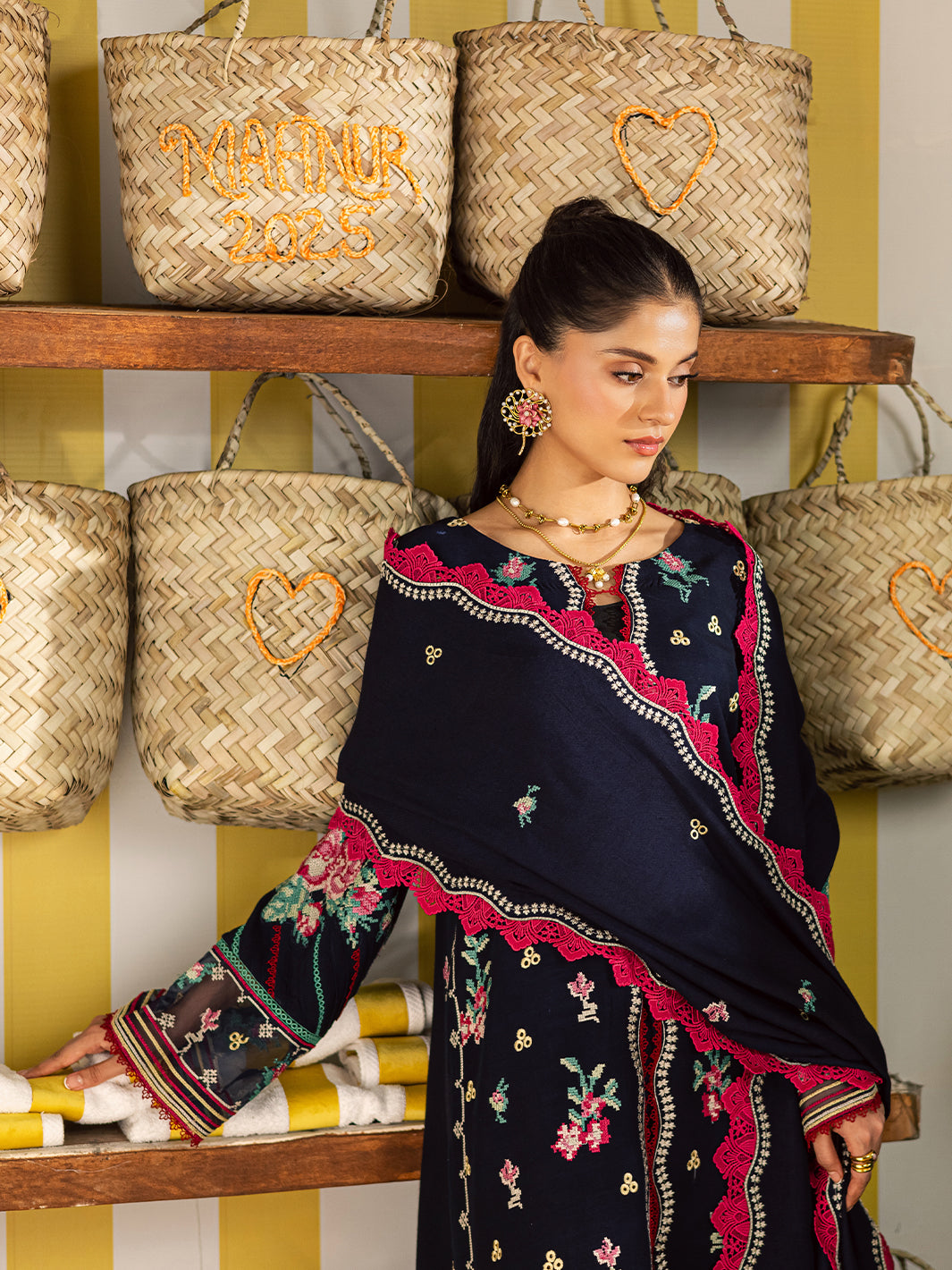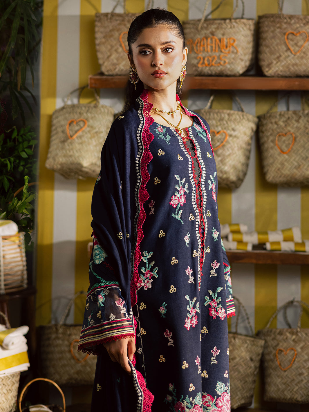 Summary: Embrace timeless elegance with this exquisite Navy Blue Pakistani Suit from Mahnur's Kaia Fall/Winter collection. Crafted from premium Slub Linen, this unstitched dress offers both comfort and warmth, making it a perfect choice for the cooler seasons. The kameez features intricate embroidery along the front panel and sleeves, set against the deep navy backdrop. This sophisticated ethnic wear ensemble is designed for formal occasions and festive gatherings. Its classic silhouette and rich detailing make it an ideal outfit for evening parties or winter celebrations, offering a graceful and polished look.