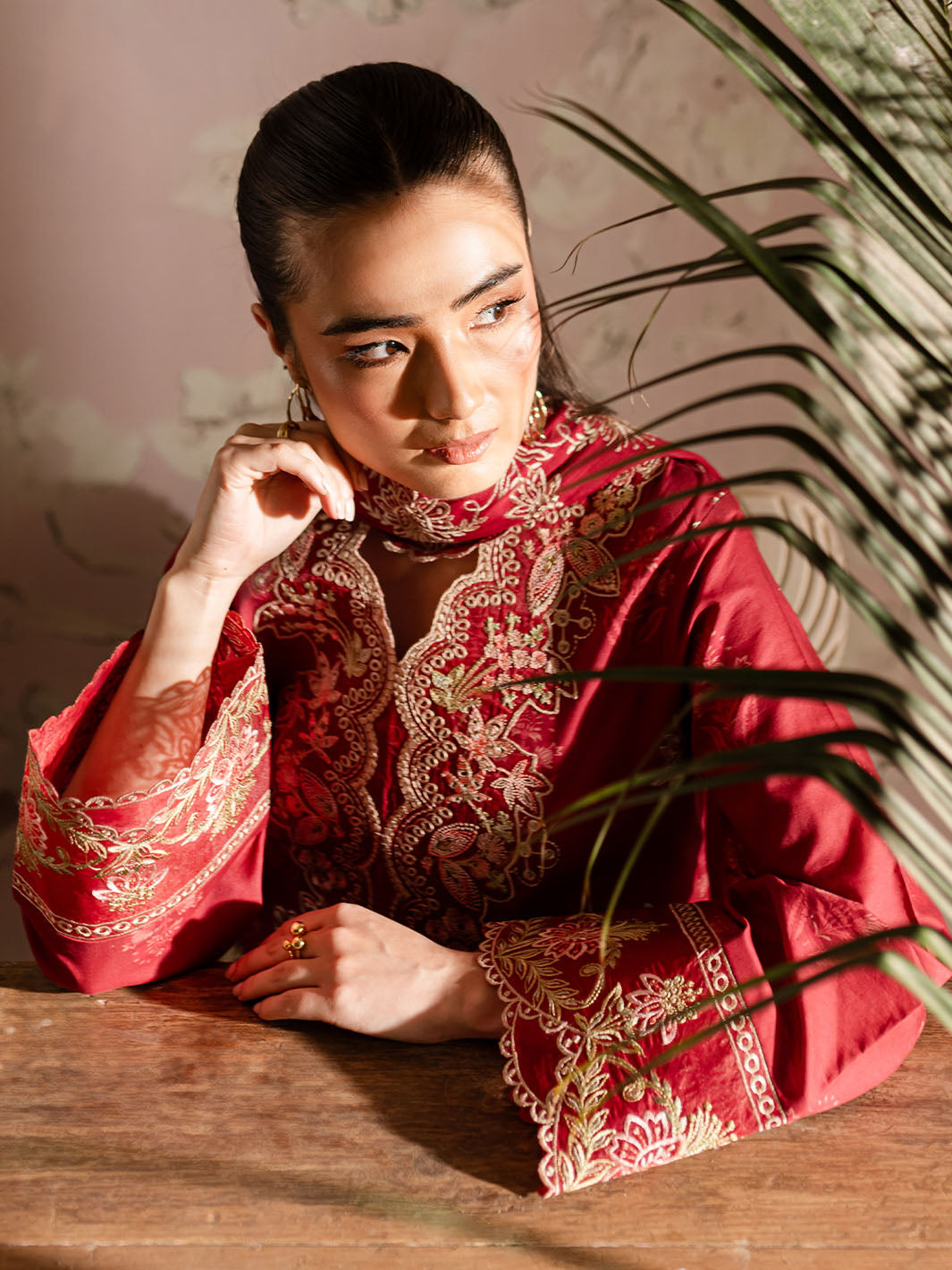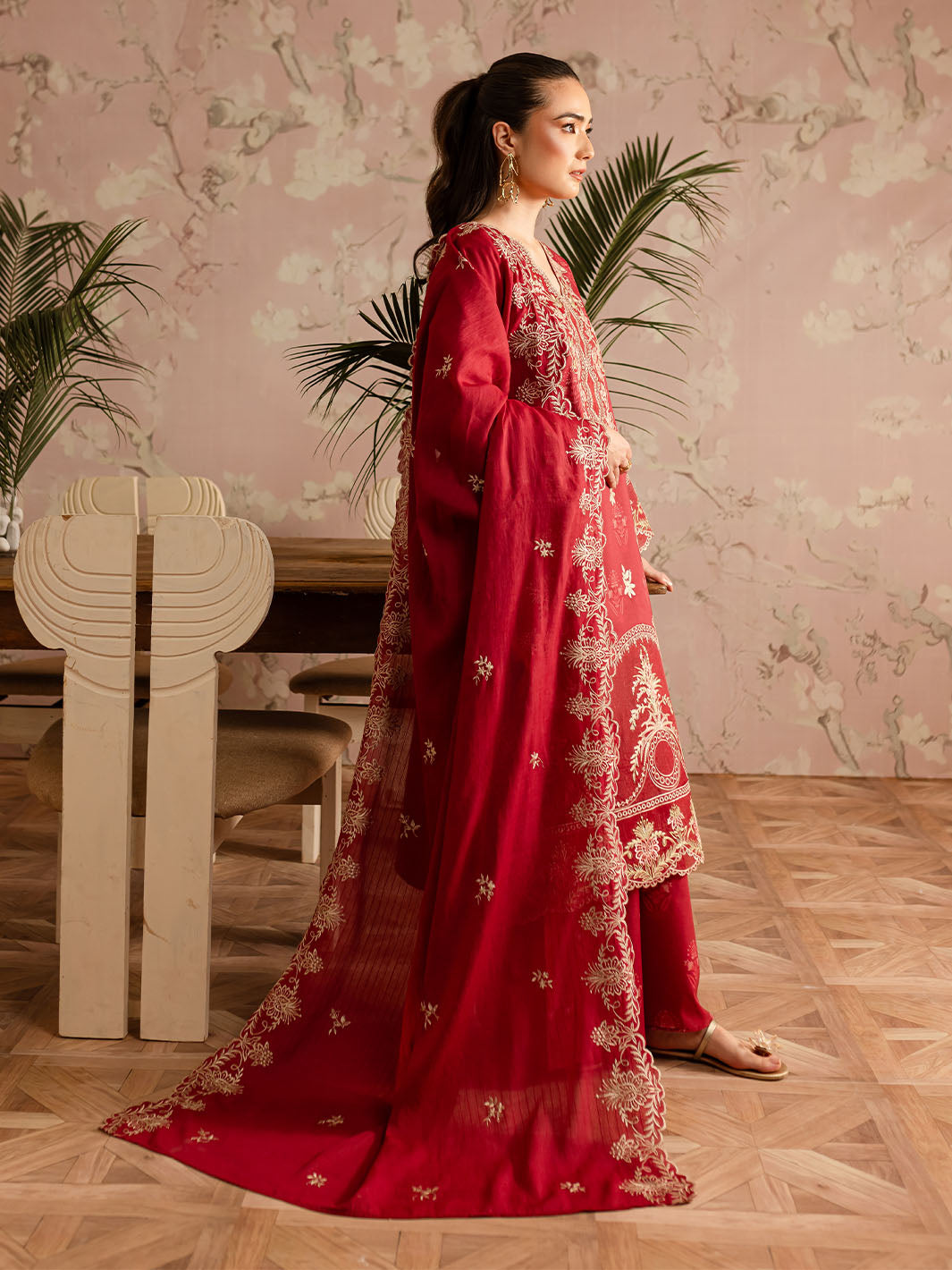 Summary: Introducing the Mahnur Leila Printkari Lawn Edit – LP - 07, a vibrant and elegant Pakistani suit perfect for making a statement at your next special occasion. This unstitched three-piece suit features a richly hued red lawn shirt, adorned with intricate embroidery that adds a touch of traditional charm. The shirt fabric includes a printed front, back, and sleeves, along with embroidered neckline, sleeve borders, daman, and an additional embroidered border for added embellishment. The accompanying lawn dupatta boasts exquisite embroidery, perfectly complementing the shirt's design. Printed trousers complete the ensemble, offering both comfort and style. This Spring/Summer essential from Mahnur is a testament to quality and craftsmanship, guaranteeing a 100% original product. The Mahnur Leila Printkari Lawn Suit is perfect for party wear, promising a look that exudes confidence and grace. Get ready to turn heads with this stunning Pakistani Lawn Suit – a true masterpiece in ethnic fashion.