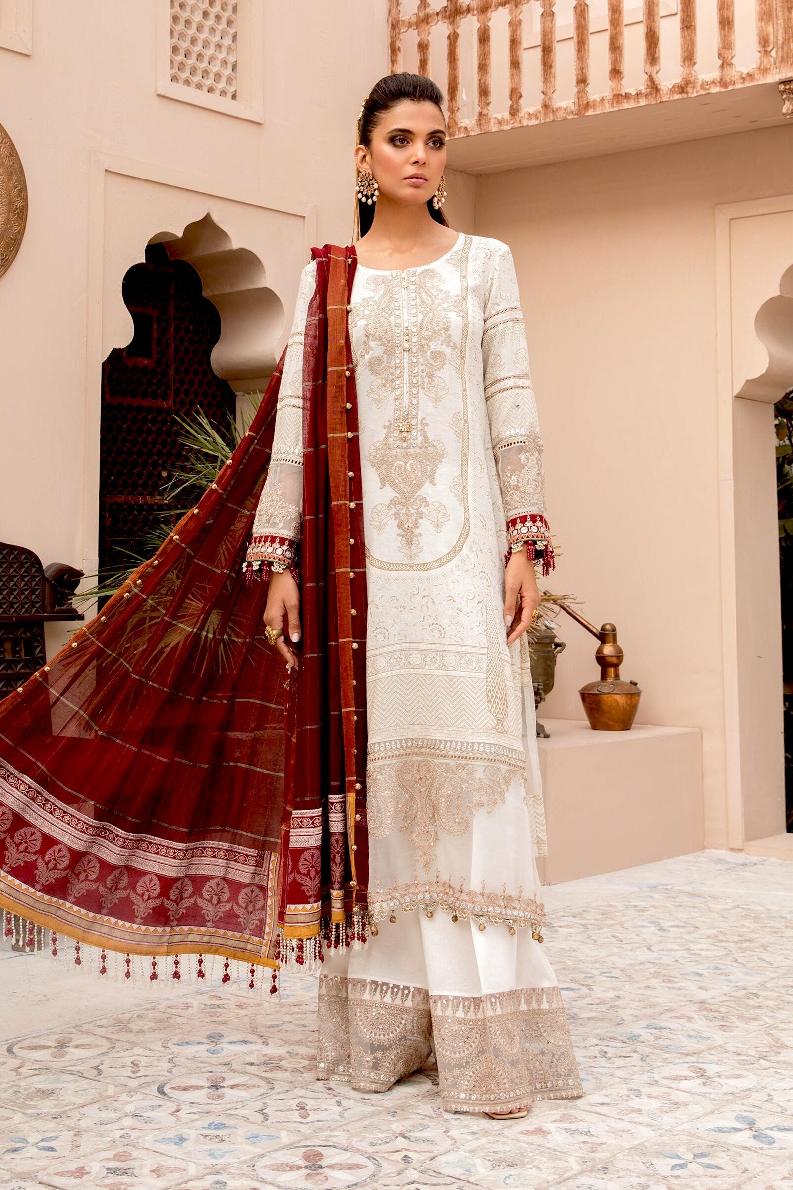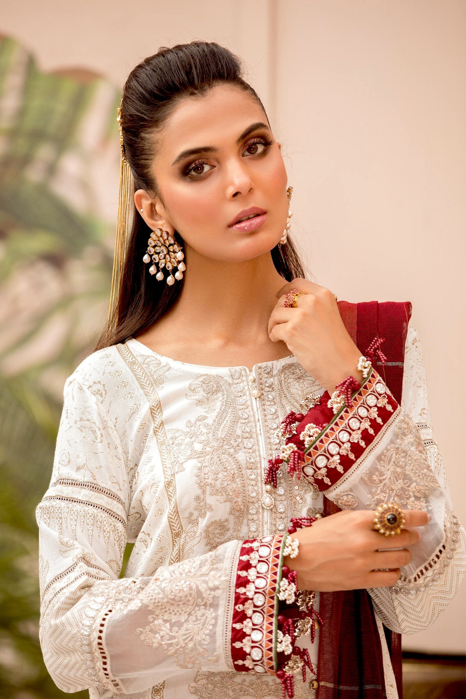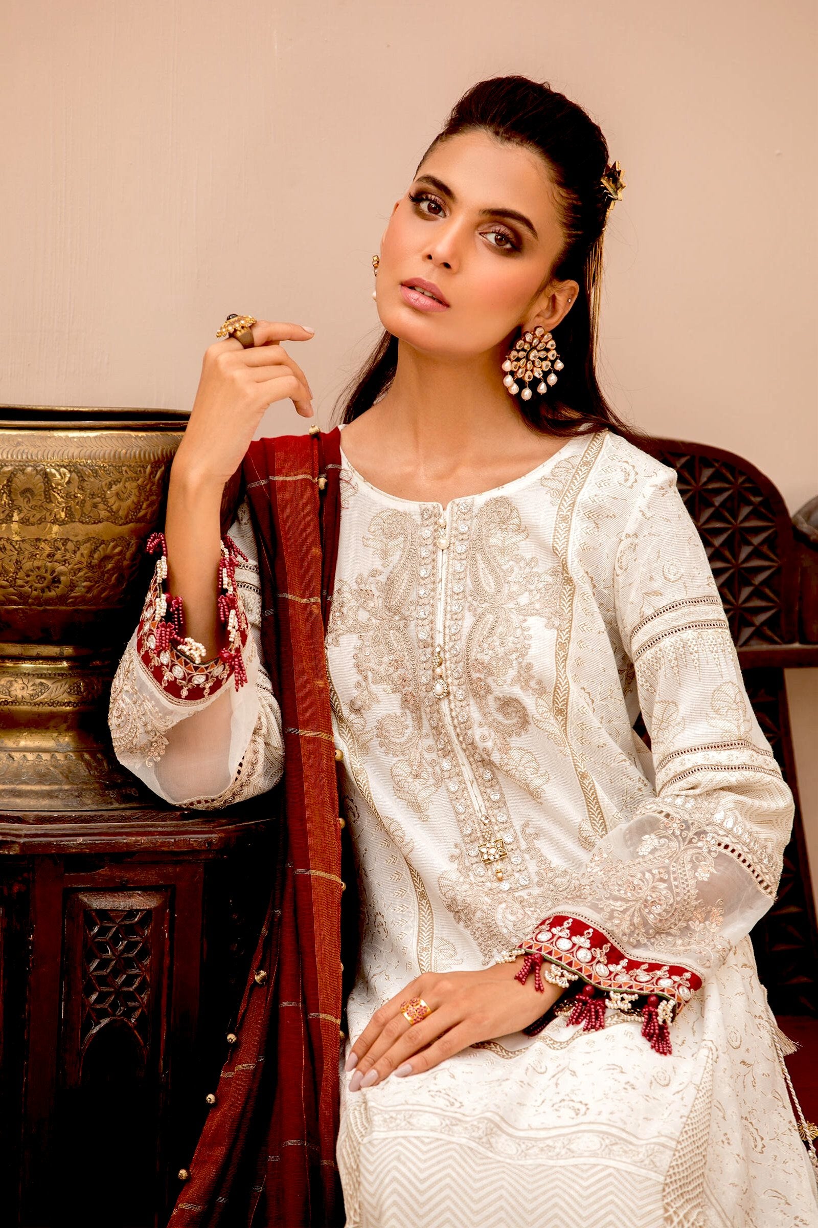 MARIA.B Eid Lawn Collection 2021 – EL-21-01-Ivory White and Maroon