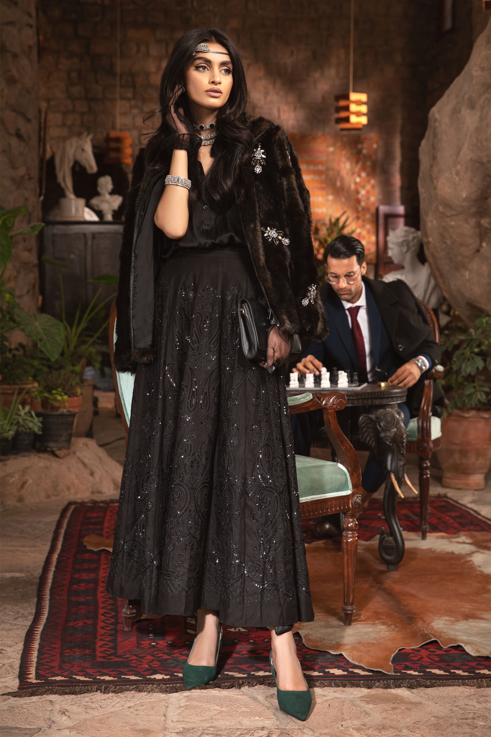 Fabric: Embroidered Linen Center Panel Embroidered Linen Side Panels Dyed Linen Back Embroidered Linen Sleeves Woven Shawl Dissolving Ghera Patti & Sleeve Patti Dyed Trouser |