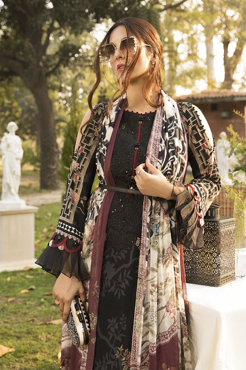 Fabric: Printed lawn shirt Cambric trouser Printed chiffon dupatta Embroidered neckline Embroidered trouser patti |