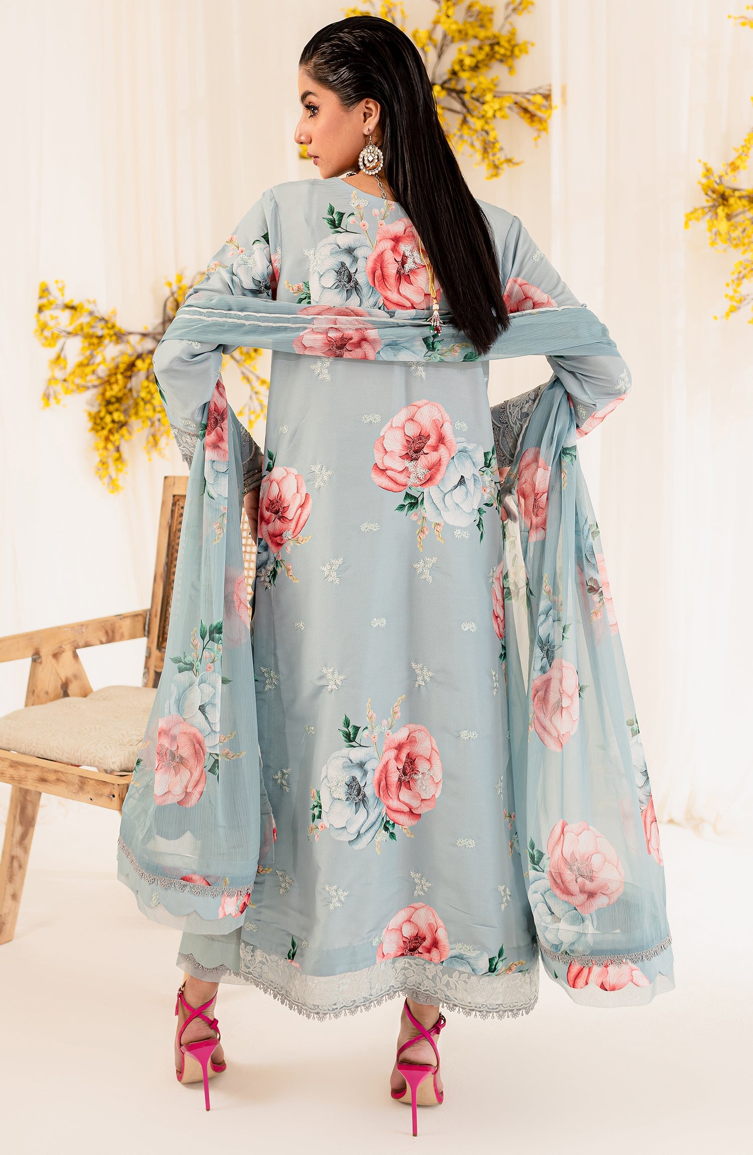 Fabric: Shirt: Printed Embroidered Lawn Shirt With Embroidered Organza Patches Fabric: Lawn Dupatta: Printed Embroidered Chiffon Dupatta Fabric: Chiffon Trousers: Dyed Cotton Trouser Fabric: Cotton |