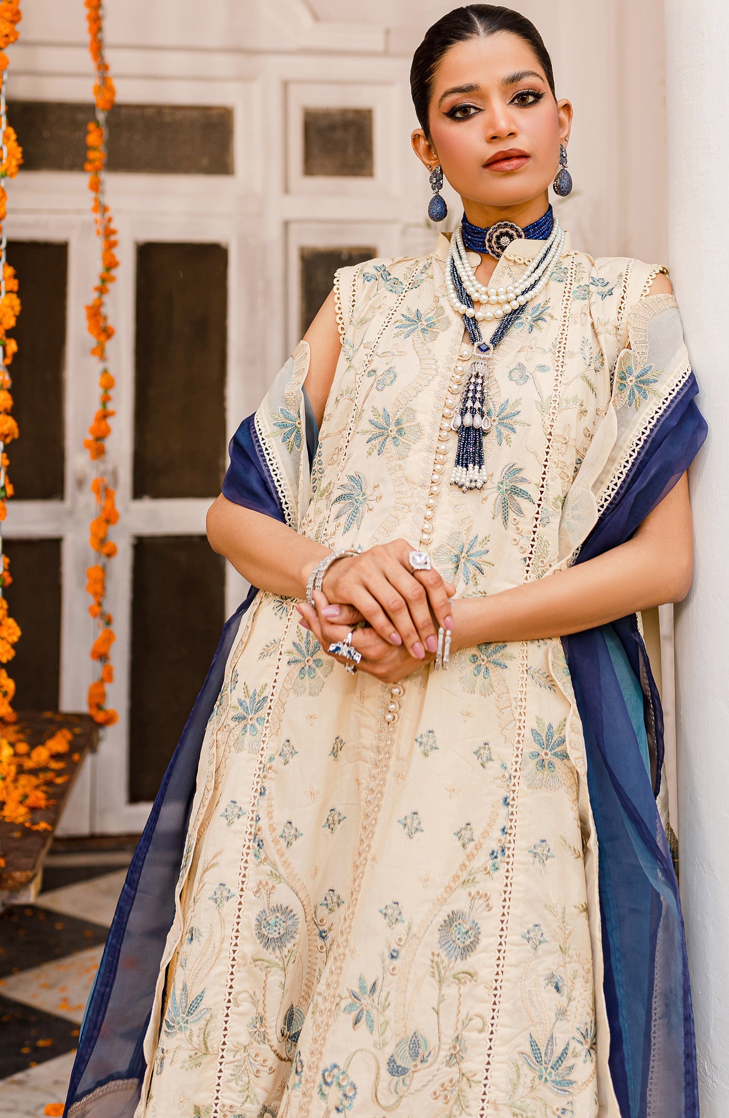 Fabric: Shirt: Embroidered Lawn Front Center Panel 1Pc Embroidered Lawn Front Left-Right Panel (1) 1Pair Embroidered Lawn Front Left-Right Panel (2) 1Pair Dyed Lawn Back & Sleeves 2Mtr Embroidered Organza Front & Sleeves Patti Patch 1Pair Fabric: Lawn Dupatta: Dyed Organza Dupatta Multi Colors With Embroidered Organza Patti Patch 2.50Mtr Fabric: Organza Trousers: Dyed Cotton Trouser 2.50Mtr Fabric: Cotton Size & Fit: Model height is 5'5. Model is wearing S size. |