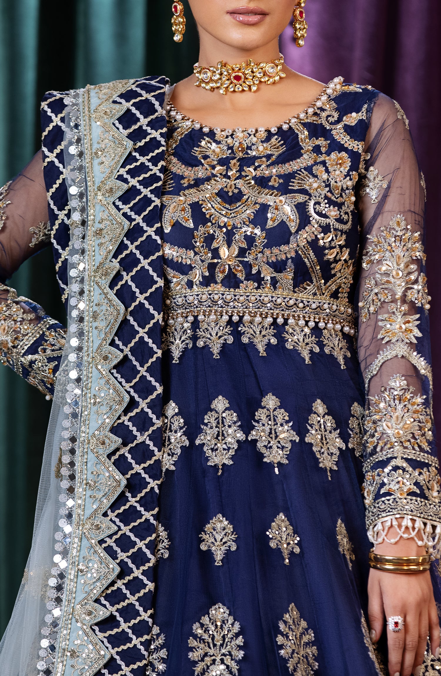 Fabric: Shirt: Embroidered Net Front Kaliay 8Pc Embroidered Net Back Kaliay 8Pc Embroidered Handmade Net Sleeves 1Pc Embroidered Handmade Net Body Front 1Pc Embroidered Net Body Back 1Pc Embroidered Organza Front & Back Patti Patch 6.25Yrds Embroidered Handmade Organza Sleeves Patti Patch 1.25Yrds Fabric: Net Dupatta: Embroidered Net Dupatta 3.25Yrds Fabric: Net Trousers: Dyed Grip Trouser 2.85Yrds Block Print Organza Trouser Bottom 5Yrds Fabric: Grip |