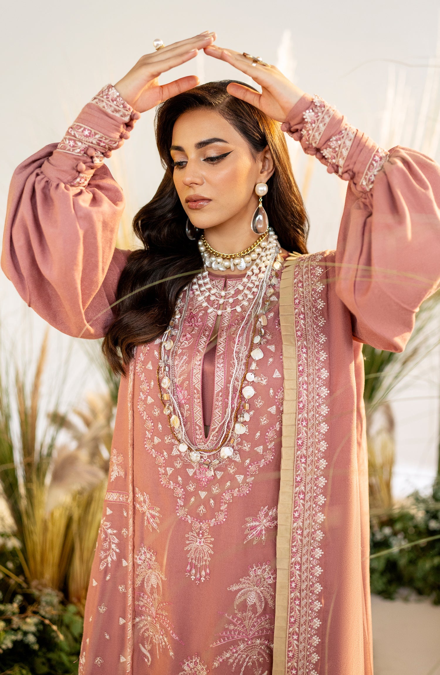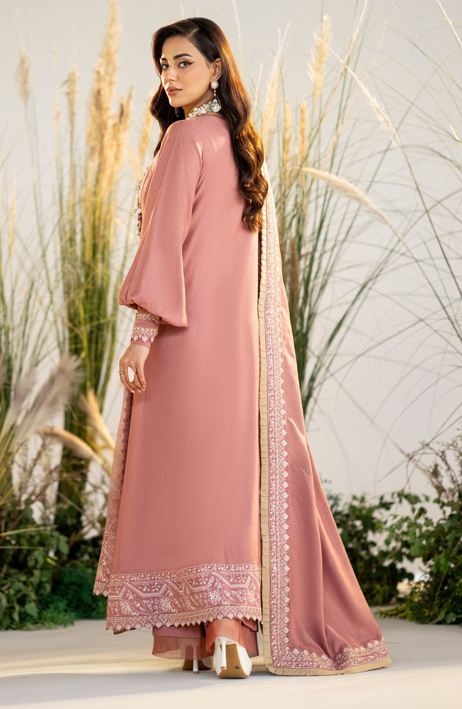 | Fabric: Embroidered Front (Peach Leather) Dyed Back (Peach Leather) Embroidered Sleeves (Peach Leather) Embroidered Sleeves Patti (Peach Leather) Embroidered Front, Back Patti (Organza) Embroidered Neck, Sleeves Extension Patti (Organza) Fabric: Peach Leather Dupatta: Embroidered Dupatta (Peach Leather) Embroidered Dupatta Pallu Patti (Peach Leather) Trousers: Dyed Trouser (Peach Leather) |