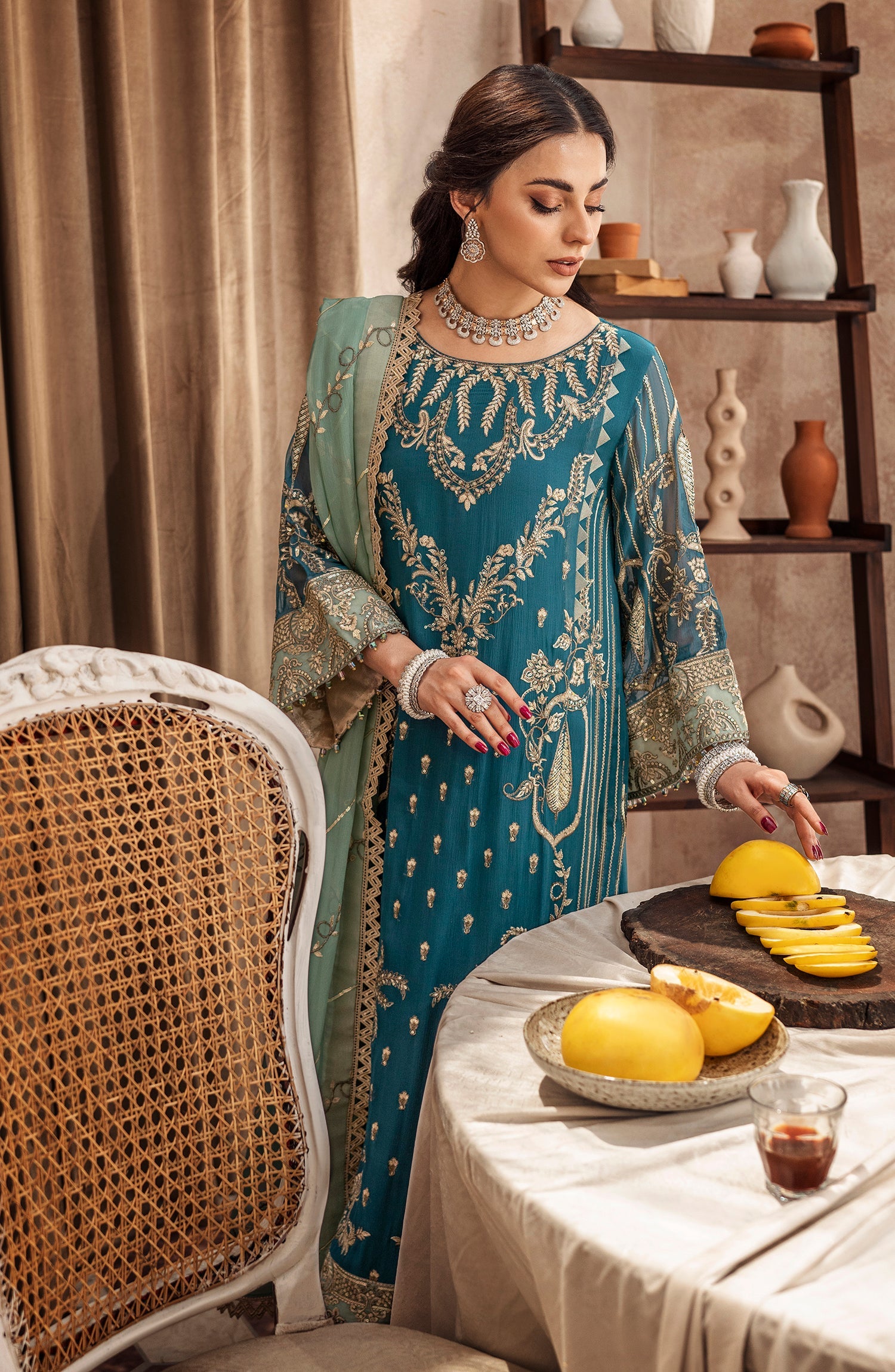 Fabric: Shirt: Embroidered Chiffon Front Center Panel 1Pc Embroidered Chiffon Front Left Panel 1Pc Embroidered Chiffon Front Right Panel 1Pc Dyed Chiffon Back 1Pc Embroidered Chiffon Sleeves 1Pc Embroidered Organza Front & Back Patti Patch 1.5Yrds Embroidered Organza Front & Sleeves Patti Patch 2Yrds Fabric: Chiffon Dupatta: Embroidered Chiffon Dupatta 2.75Yrds Embroidered Dupatta Organza Patti Patch 8.25Yrds Fabric: Chiffon Trousers: Dyed Grip Trouser 2.50Yrds Fabric: Grip |