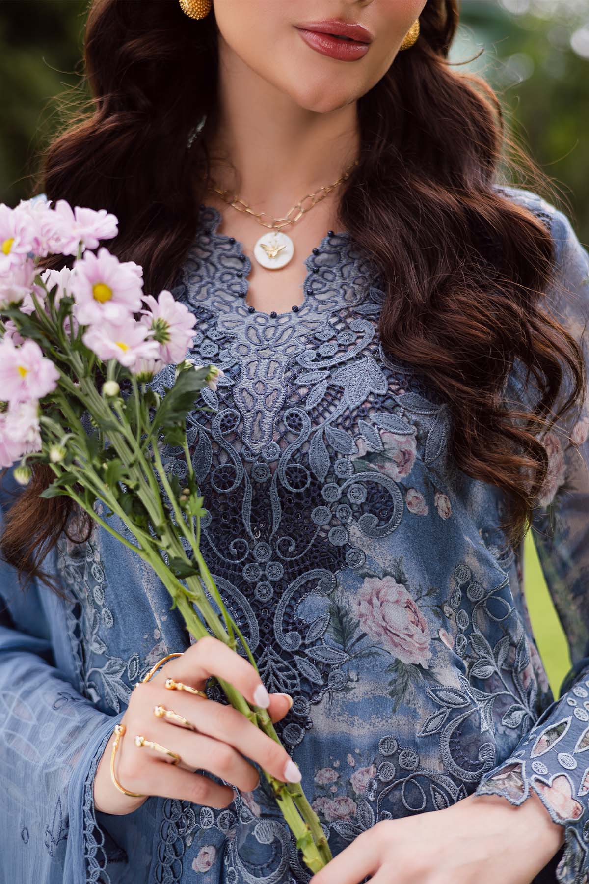 Summary: Embrace timeless elegance with the Nureh Ballerina Luxury Formals, a stunning blue Pakistani suit. This ensemble features a beautifully crafted chiffon shirt, adorned with a delicate floral print and intricate tonal embroidery around the neckline. The lightweight chiffon fabric makes this an ideal Spring/Summer outfit, ensuring both comfort and style. As a sophisticated piece of ethnic wear, this formal dress is perfect for upscale events, parties, and wedding celebrations. This Pakistani dress offers a graceful silhouette that exudes sophistication, making it a must-have for your festive wardrobe. Shop this exquisite formal wear online for your next special occasion.