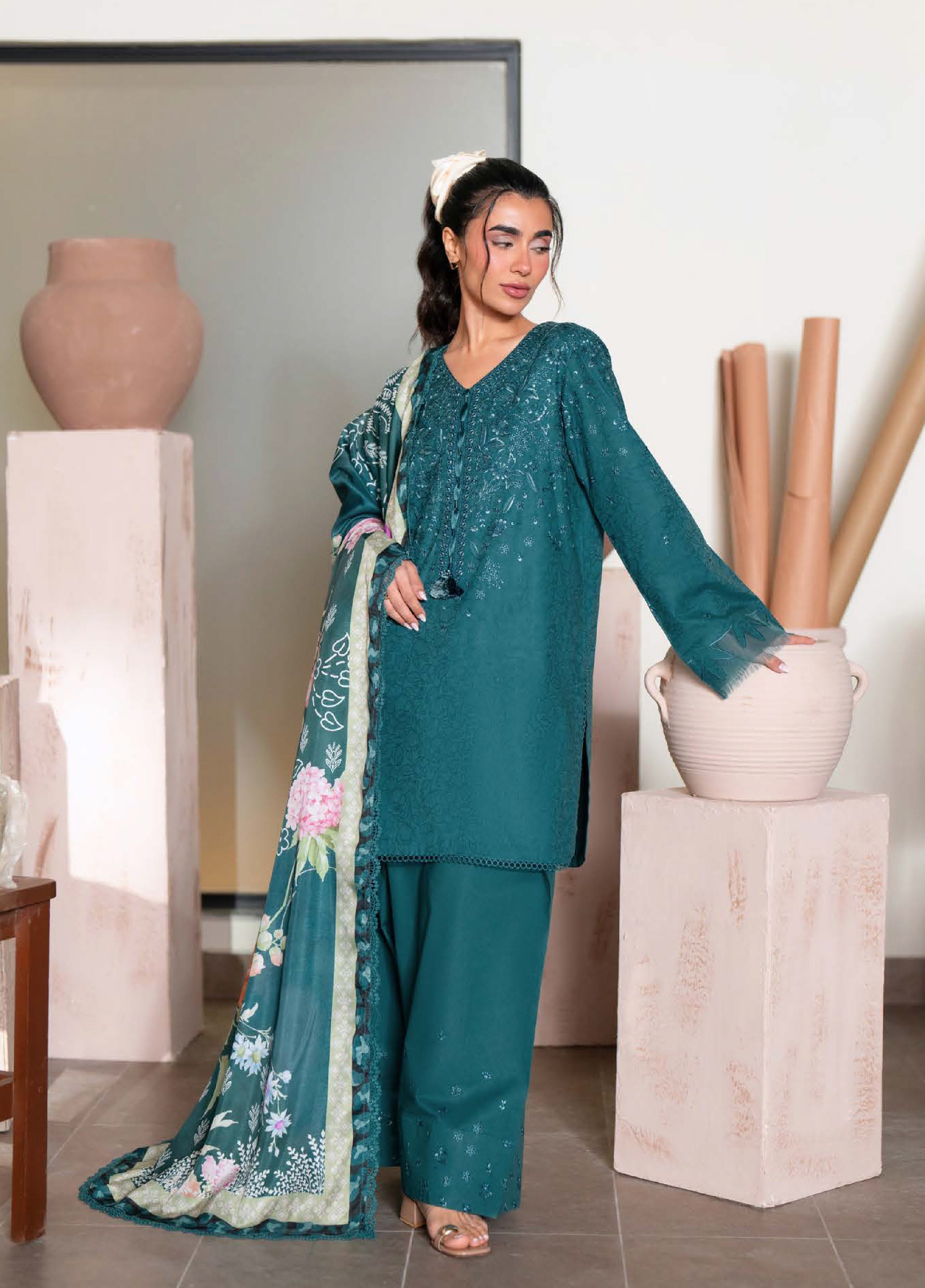 Fabric: Embroidered Self Jacquard Lawn Shirt Embroidered Cotton Farshi Shalwar Printed Silk Dupatta |