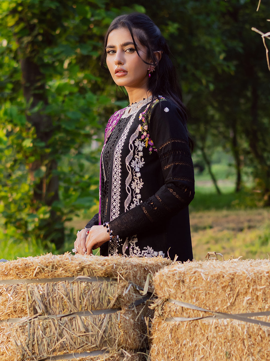Summary: Embrace winter elegance with the Parishay Winterwood Tales Pakistani suit. This formal wear is crafted from rich black Khaddar, a fabric renowned for its warmth, making it an ideal choice for the Fall/Winter season. The unstitched dress features intricate, artistic embroidery on the front panel, neckline, and daman, creating a sophisticated look. Paired with a luxurious embroidered wool shawl, this ethnic outfit exudes timeless grace. As a classic black Pakistani dress, it's perfect for evening functions and formal gatherings, offering a blend of traditional craftsmanship and contemporary style.