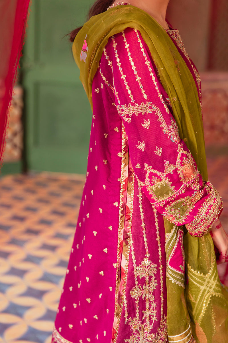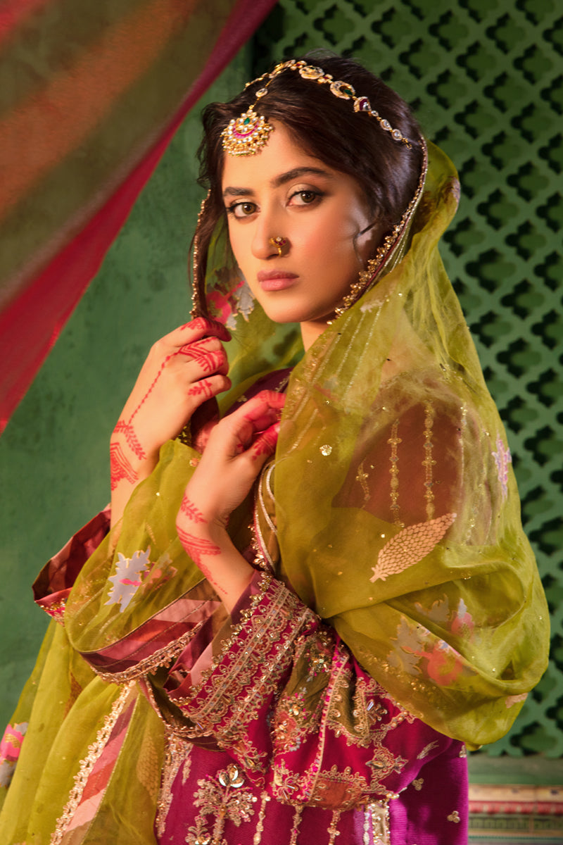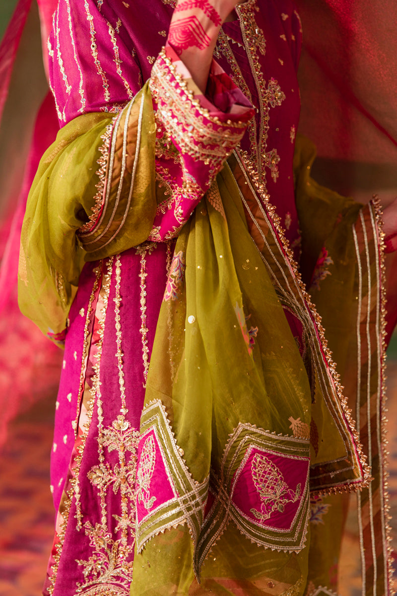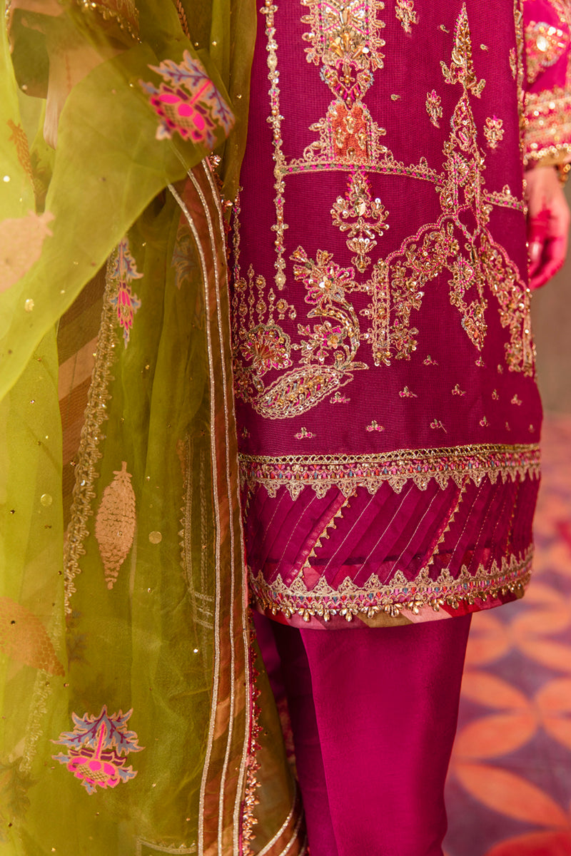Fabric: Shirt Embroidered Front (Hand Made) Embroidered Side Panels (Front) Embroidered Lace (Front) Embroidered Neckline (Front) (Hand Made) Embroidered Lace (Front & Back) Border Embroidered (Back) Embroidered Neckline (Back) (Hand Made) Pintucks Front & Back) Border Gota Embroidered (Sleeves) Chatta Patti Embroidered Border (Sleeves) (Hand Made) Digital Printed Fabric(Daman, Neckline, Sleeves) Dupatta Block Printed Dupatta (Hand Made) Chatta Patti Embroidered Dupatta Pallu Trouser Plain Trouser Embroidered Lace |