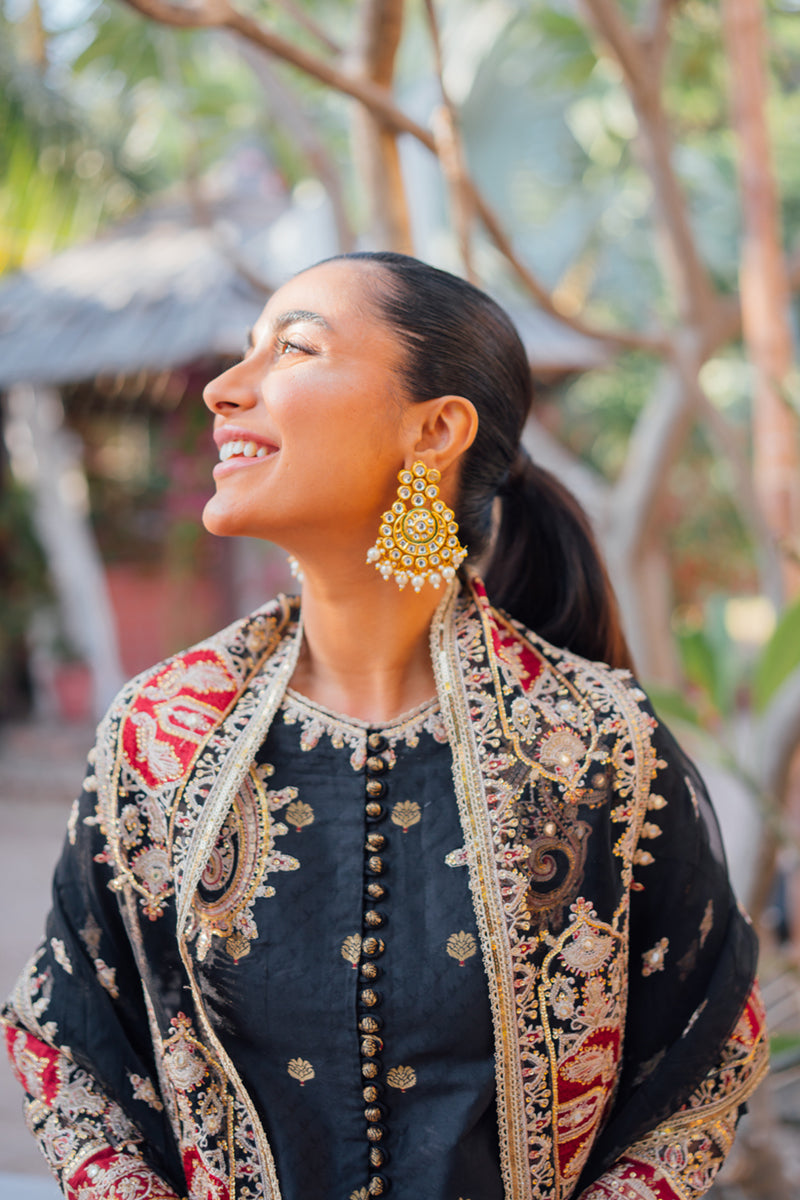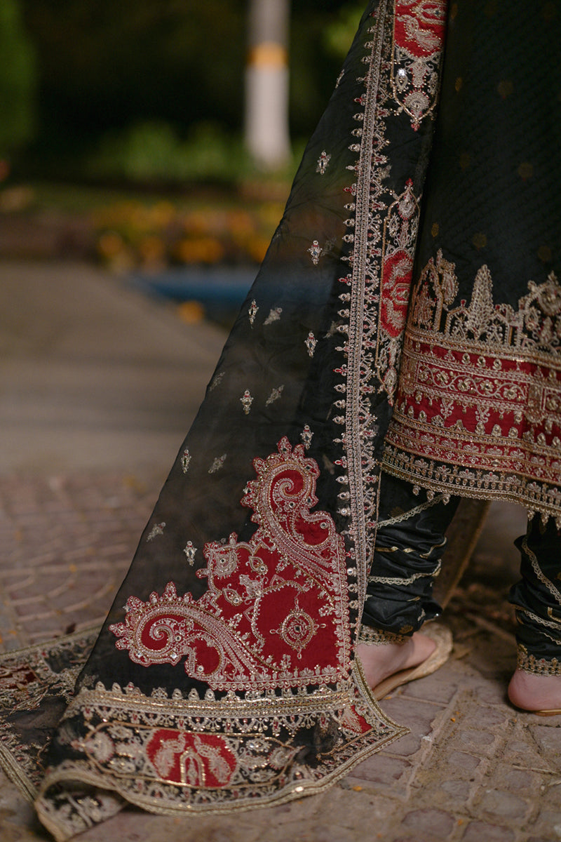 Fabric: Shirt Embroidered Neckline (Front) Sheesha Embroidered Shoulder Patch Sheesha Embroidered Border (Front) Hand Made Sheesha Embroidered Side Lace (Front) Sheesha Embroidered Border (Front) on Raw Silk (Hand Made) Sheesha Embroidered Border (Back) Sheesha Embroidered Border (Back) on Raw Silk Embroidered Neckline (Back) Jacquard weaved Fabric (Front, Back & Sleeves) Sheesha Embroidered Side Patti Sheesha Embroidered Border (Sleeves) Sheesha Embroidered (Sleeves) Patch on Raw Silk Dupatta Sheesha Embroidered Dupatta Sheesha Embroidered Dupatta Pallu Sheesha Embroidered Motifs (Dupptta ) Trouser Jacquard Weaved Trouser Embroidered Lace (Trouser) Fabric Details Shirt: Jacquard Weaved Dupatta: Organza Trouser: Jacquard Weaved |