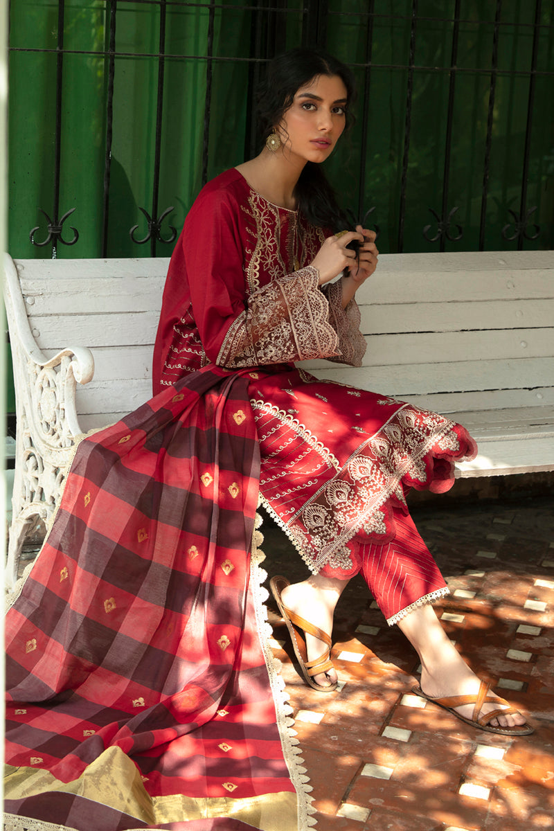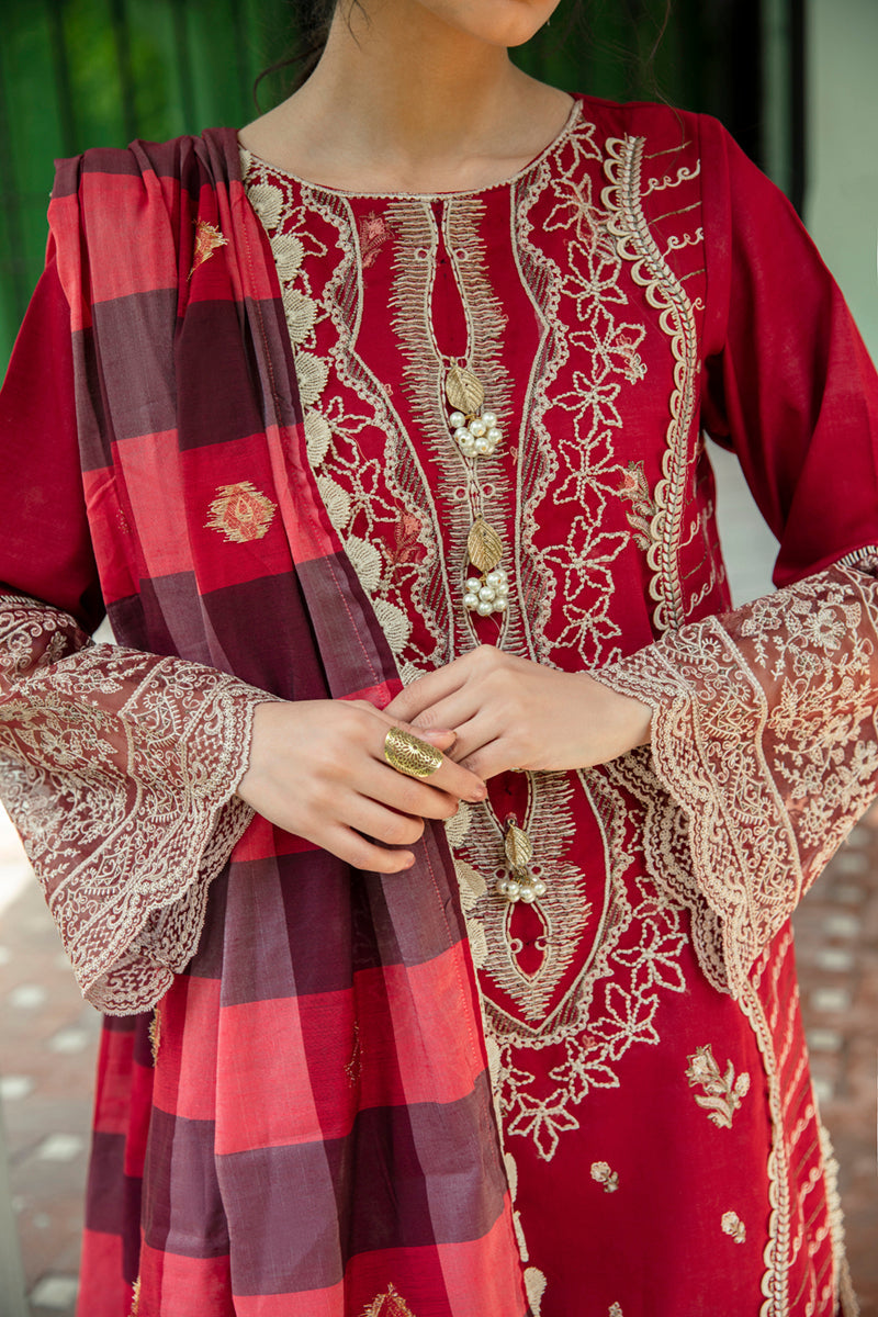 Fabric: Shirt Embroidered Neckline Embroidered Front Center Panel Embroidered Panels ( Left & Right ) Embroidered Border (Front & Back) Embroidered Border (Sleeves) Embroidered Motifs (Front & Back ) Plain Back & Sleeves Dupatta Jacquard Weaved Trouser Plain Trouser |