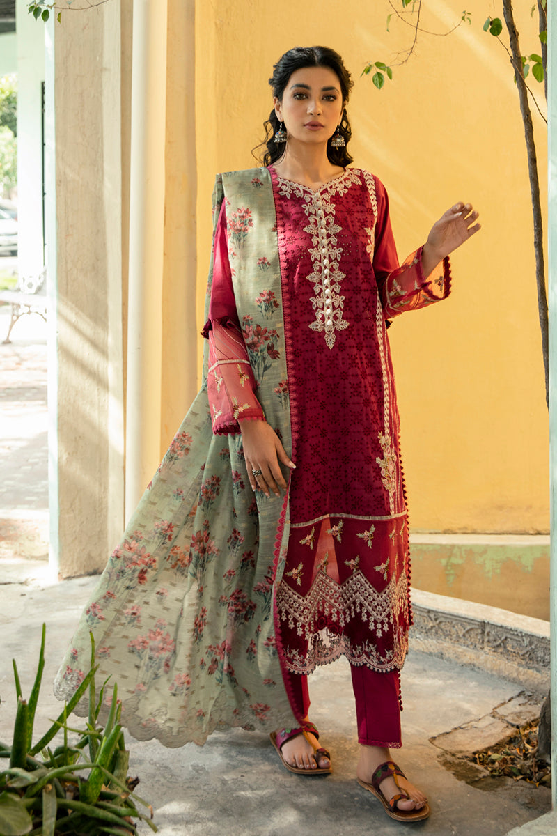 Fabric: Shirt Chikankari Embroidered (Front center Panel) Embroidered Neckline Embroidered Motifs (Front) Embroidered Patch (Front & Sleeves) Embroidered Border (Front) Embroidered Lace (Front & Back) Plain Back & Sleeves Dupatta Jacquard Weaved Digital Pritned Embroidered Patch (Dupatta Pallu) Trouser Plain Trouser |