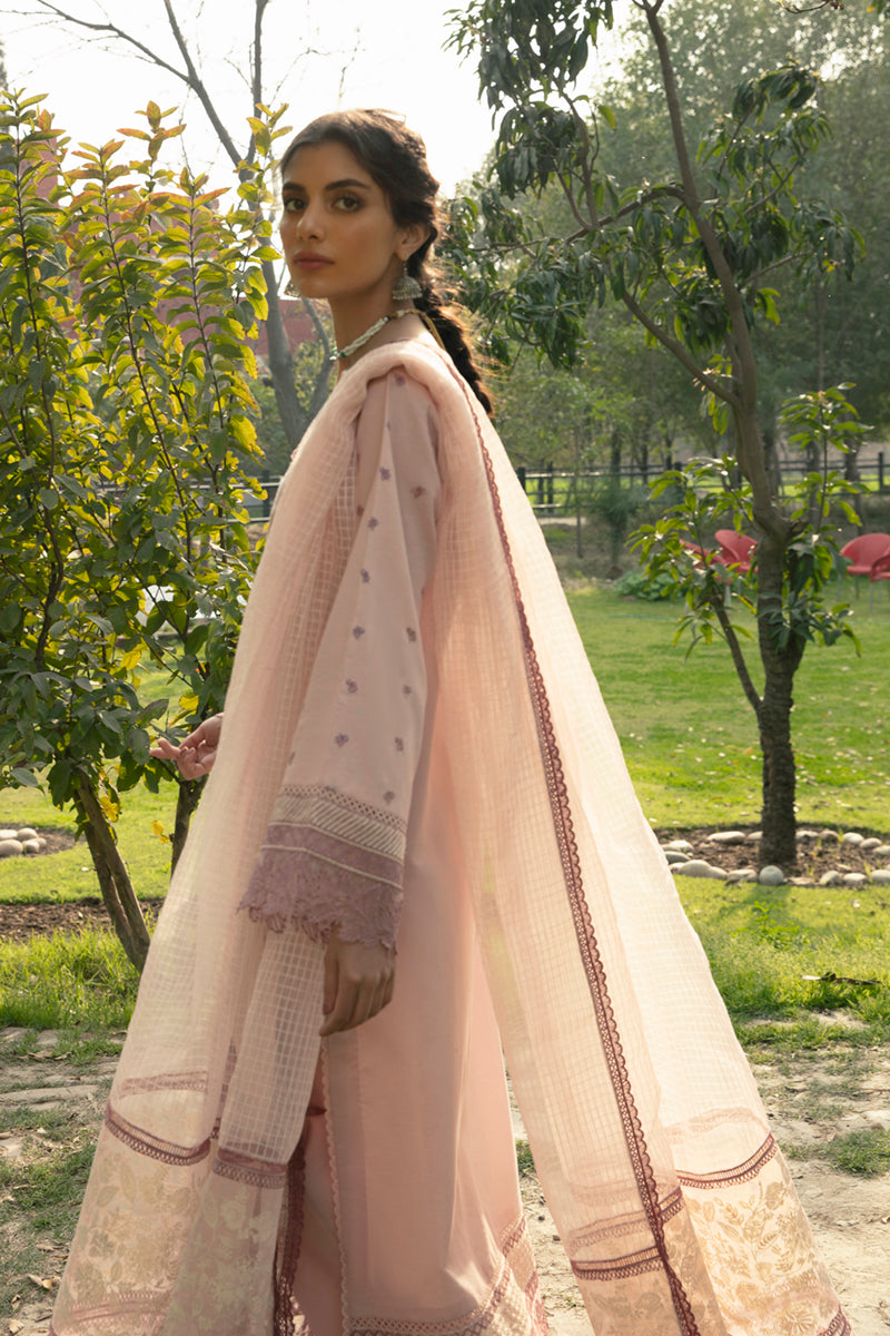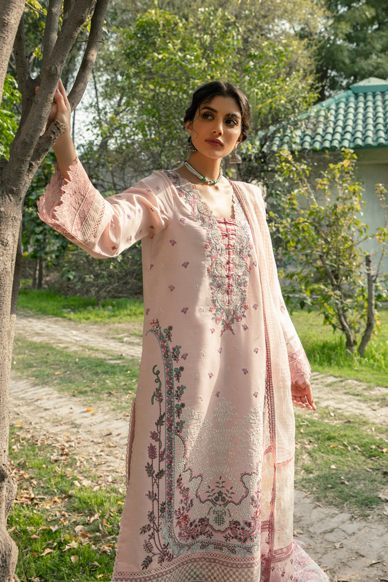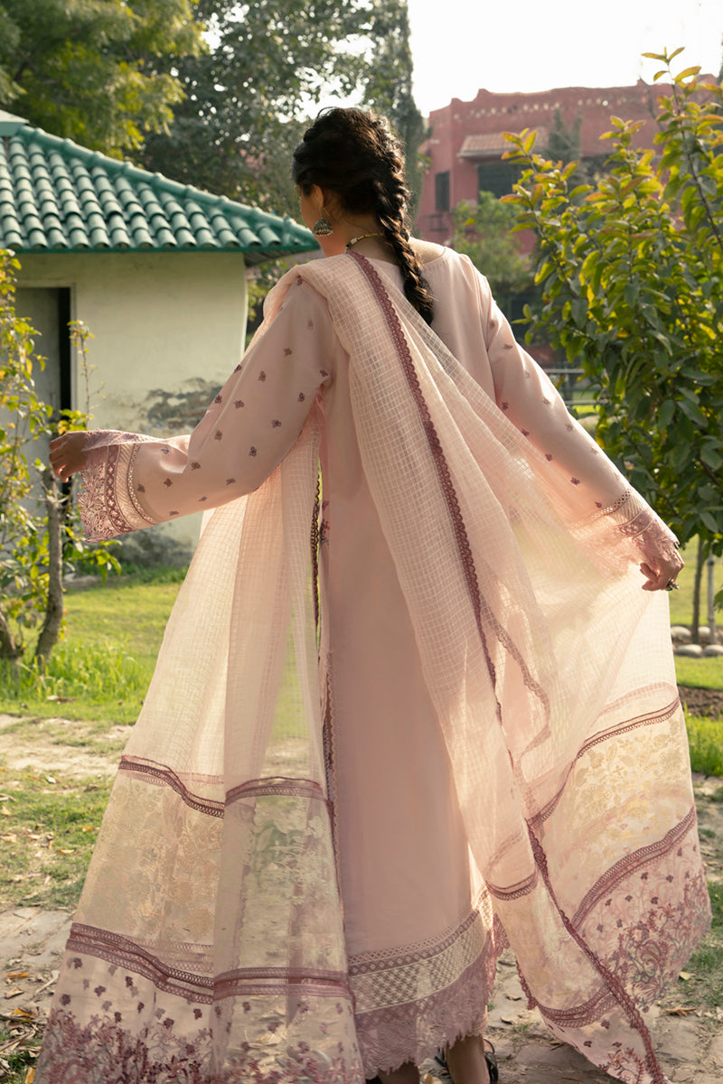 Fabric: Shirt Embroidered Neckline Chikankari Embroidered (Front) Embroidered lace (Front & Back) Embroidered Patch (Front, Back & Sleeves) Embroidered Sleeves Plain Back Embroidered Lace (Sleeves) Dupatta Jacquard Weaved Embroidered Dupatta Pallu Block Printed Dupatta Pallu Trouser Plain Trouser |