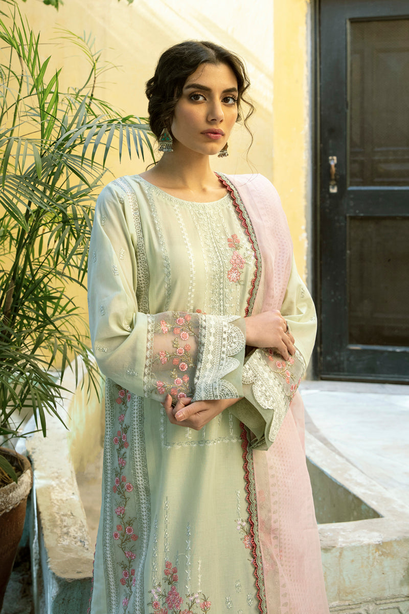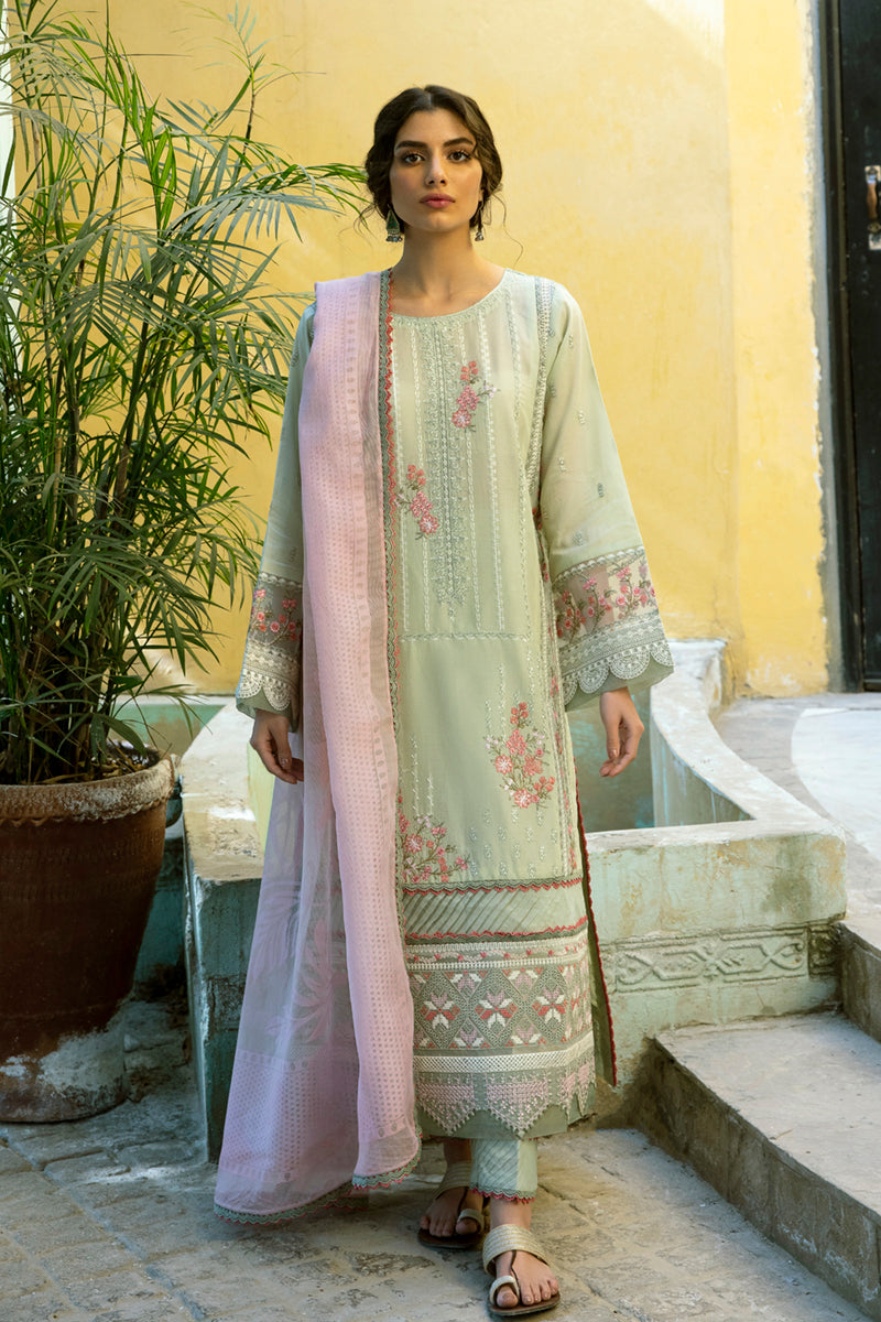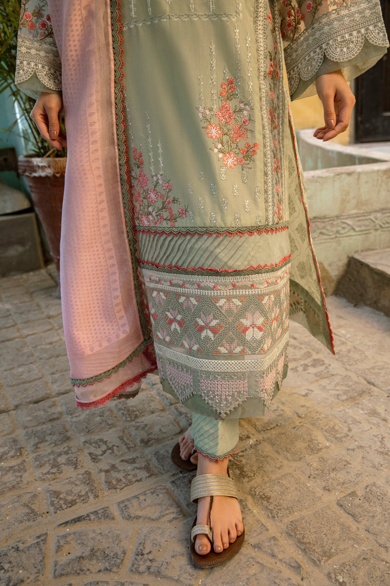 Fabric: Shirt Embroidered Front Center Panel Embroidered Side Patches Embroidered Border (Front) Embroidered (Sleeves) Embroidered (Sleeves) Patch Embroidered (Sleeves) Lace Embroidered Border (Back) Block Pritned (Back) Dupatta Jacquard Weaved Trouser Plain Trouser |