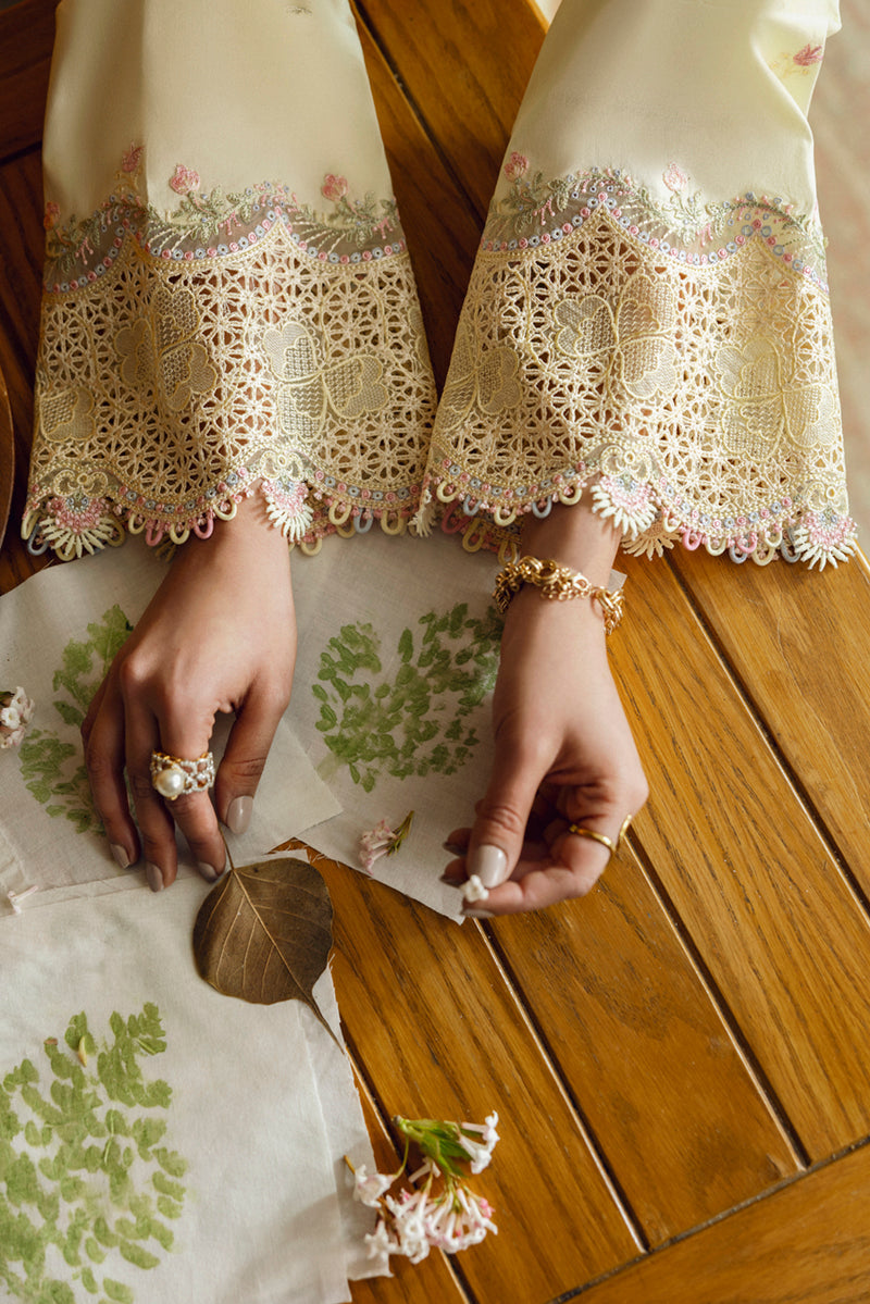 Fabric: Shirt Chikankari Embroidered Center Panel Chikankari Embroidered Panels Left & Right Chikankari Embroidered Border (Front) Plain Back Embroidered Sleeves Chikankari Embroidered Border (Sleeves) Dupatta Chikankari Jacquard Weaved Embroidered Dupatta Embroidered Dupatta Four Sided Border Trouser Plain Trouser Fabric Details Shirt = Lawn Dupatta = Jacquard Weaved Trouser= Cotton |