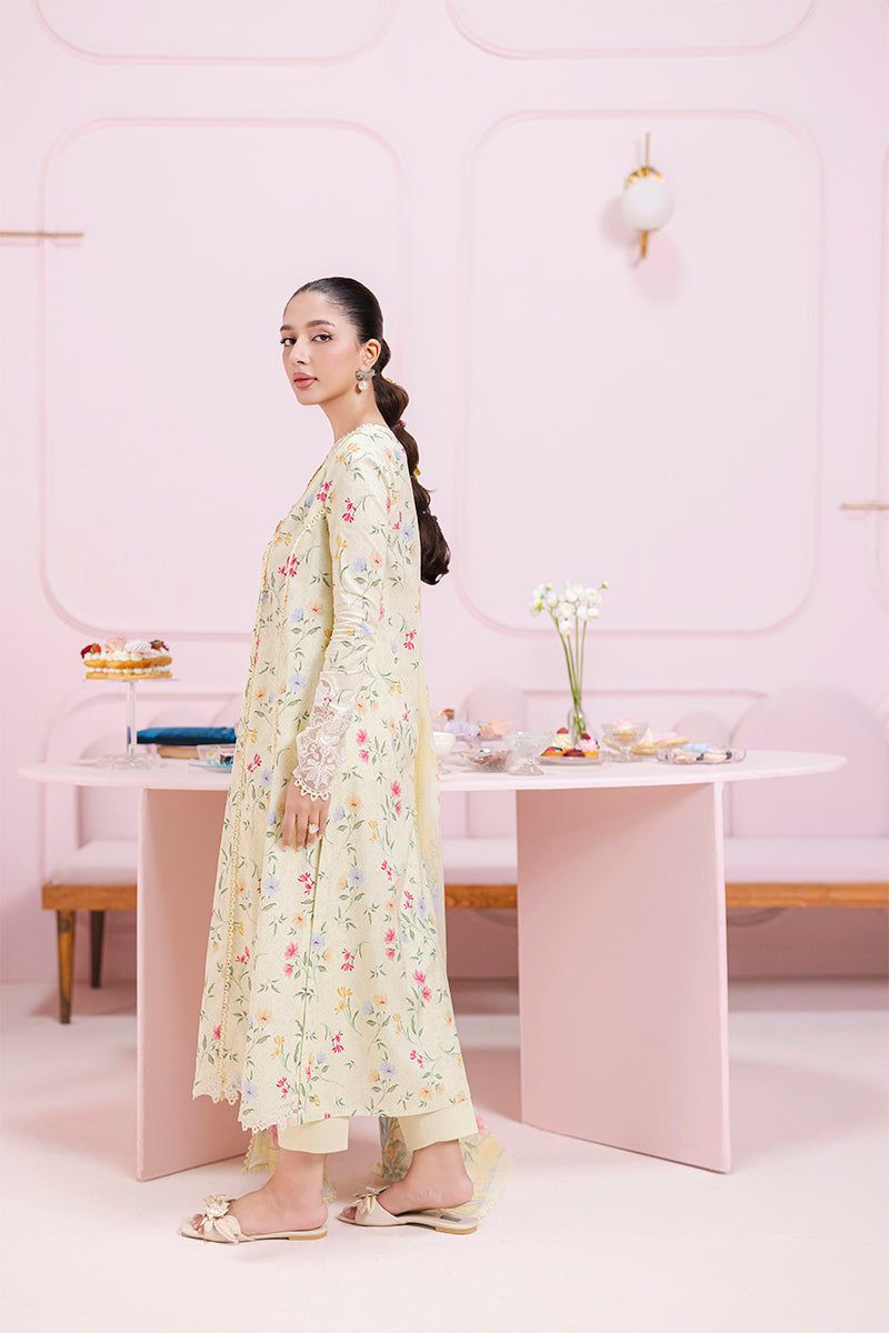 Fabric: Shirt Digital Printed Shirt Embroidered Neckline Embroidered Border (Sleeves) Embroidered Hem (front) Dupatta Digital Printed Lawn Dupatta Trouser Plain Trouser Fabric Details Shirt = Lawn (Printed) Dupatta: Lawn (Printed) Trouser = Cotton |