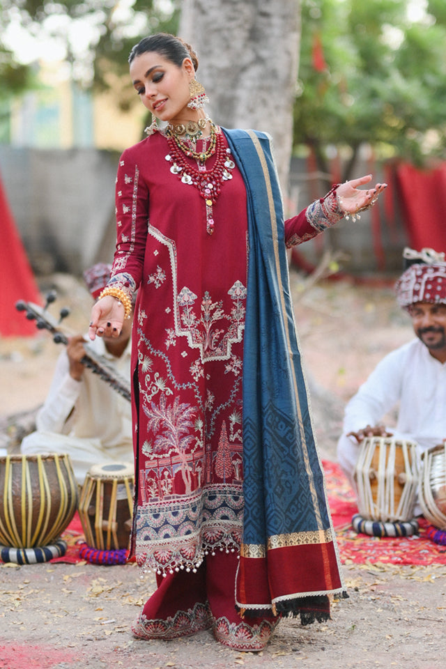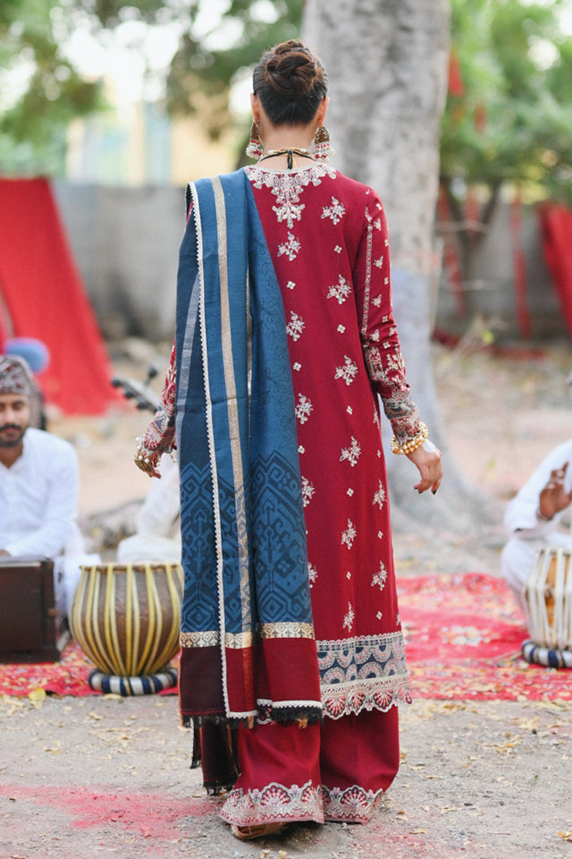 Fabric: Shirt Embroidered (Front) Embroidered Neckline (Front) Embroidered Border (Front, Back & Sleeves) Embroidered Patch (Front ,Back & Sleeves) Embroidered Neckline (Back) Embroidered (Back) Embroidered (Sleeves) Shawl Wool Shawl Trouser Plain Trouser Embroidered Border (Trouser) Fabric Details Shirt: Karandi Shawl: Wool Shawl Trouser: Karandi |