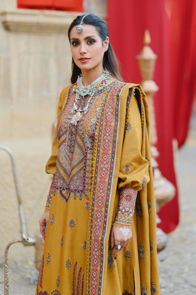 Fabric: Shirt Embroidered Center Panel (Front) Embroidered Side Panels (Front) Embroidered Border (Front) Embroidered Border (Back) Plain (Back) Embroidered (Sleeves) Embroidered Border (Sleeves) Digital Printed Patti (Shirt) Shawl Embroidered Shawl Embroidered Shawl (Pallu) Embroidered Lace (Shawl) Digital Printed Fabric (Shawl Piping) Trouser Plain Trouser Embroidered Border Fabric Details Shirt: Karandi Shawl: Karandi Trouser:Karandi |