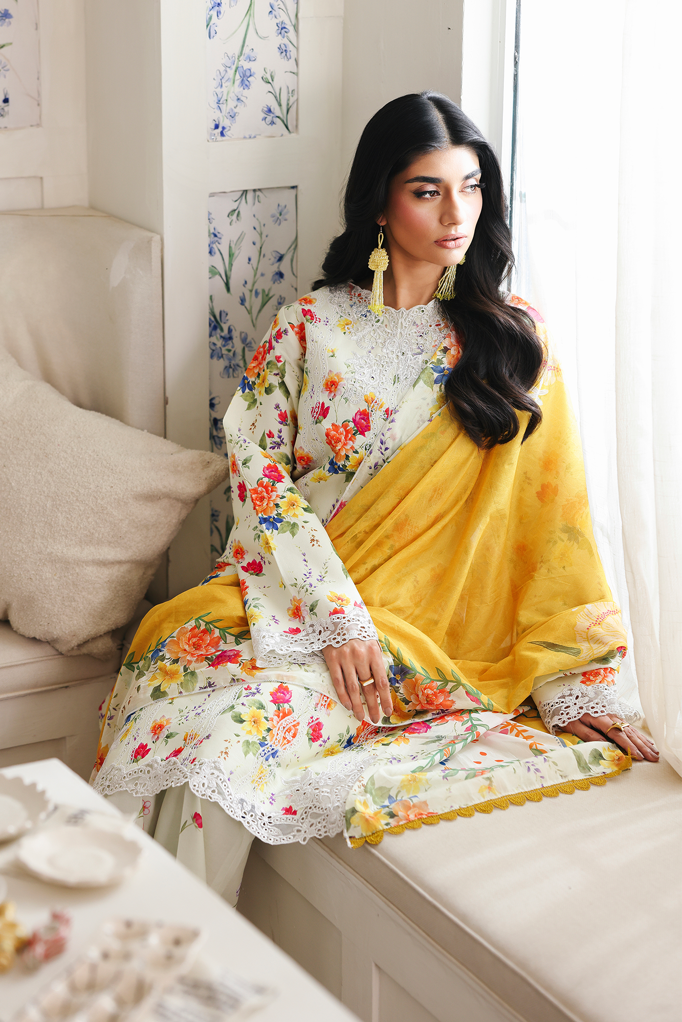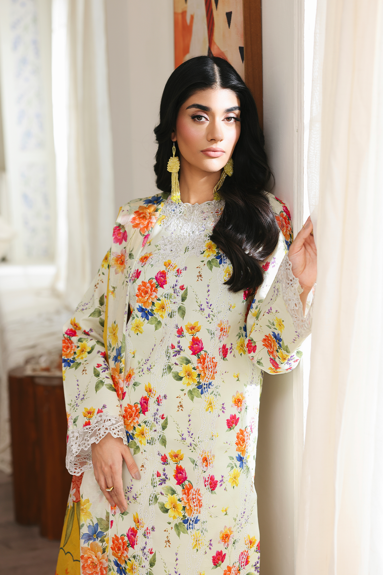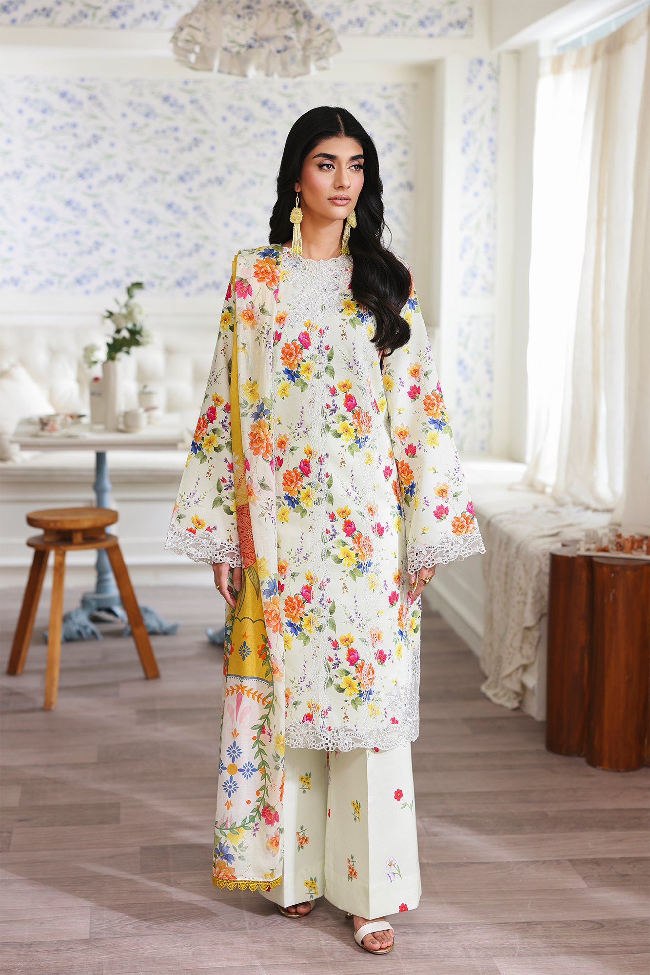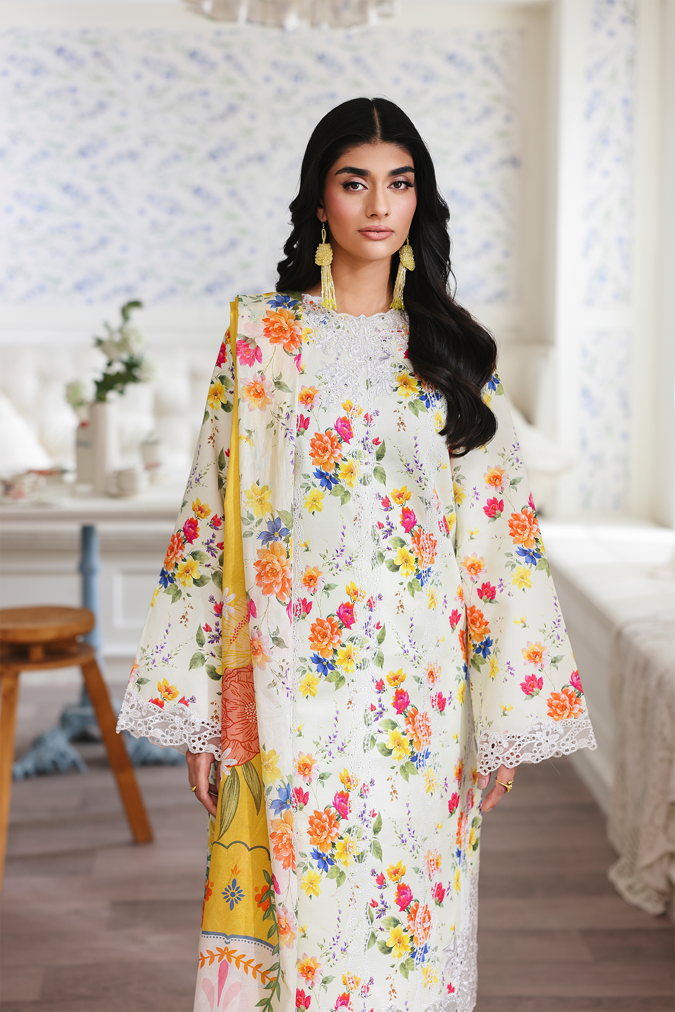 Fabric: Chikan Embroidered & Printed Lawn Front Digital Printed Lawn Sleeves & Back Embroidered Border for Sleeves Embroidered Hem Border Embroidered Neckline on organza Digital Printed Cotton Trouser Digital Printed Primium Voil Dupatta |