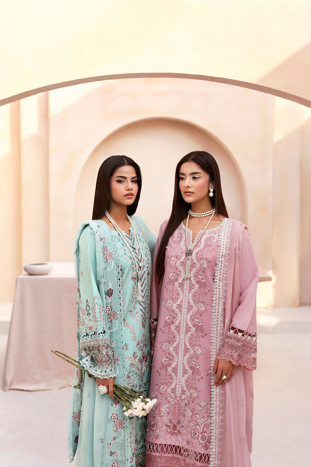 Summary: Embrace the elegance of summer with the Ramsha Ghazal G-503, a stunning Pakistani Lawn Suit in a refreshing Sea Green hue. This unstitched ensemble features a premium embroidered lawn kameez adorned with delicate floral motifs in soft pinks and magentas, enhanced by intricate organza borders for the hem and sleeves. Paired with a sheer, embroidered chiffon dupatta, this outfit offers a breathable and sophisticated look ideal for the warm Spring/Summer season. Perfectly suited for festive occasions like Eid, daytime weddings, or semi-formal gatherings, this dress combines traditional craftsmanship with modern pastel aesthetics. Shop this original designer piece to elevate your ethnic wardrobe with effortless luxury.