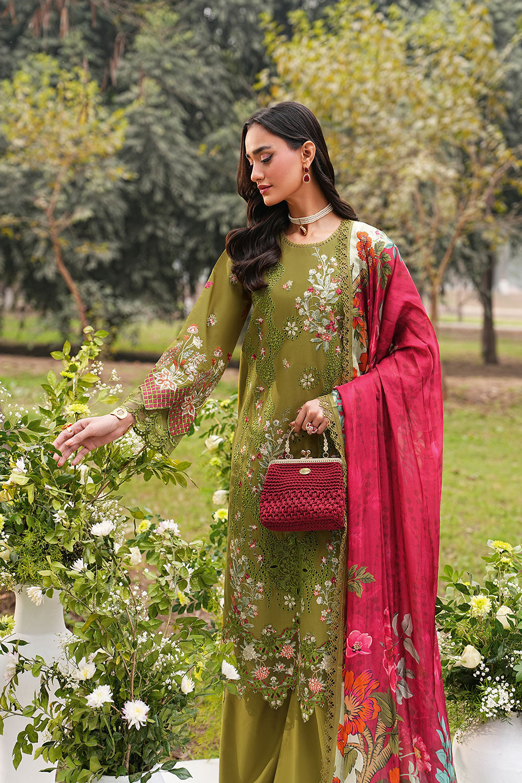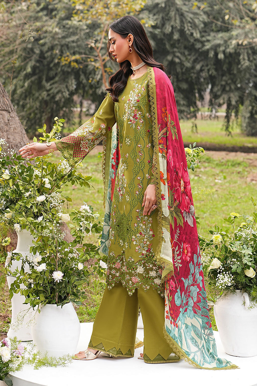 Summary: Embrace the elegance of summer fashion with this exquisite Ramsha Pakistani lawn suit in a sophisticated olive green hue. The unstitched ensemble features a breathable lawn shirt adorned with intricate floral embroidery and delicate schiffli cutwork, showcasing premium Pakistani craftsmanship. Paired with a luxurious digitally printed silk dupatta featuring vibrant floral motifs, this outfit perfectly balances earthy tones with festive flair. Ideal for spring/summer events, this olive green dress is a splendid choice for Mehndi functions, Eid celebrations, or semi-formal garden parties. Elevate your ethnic wardrobe with this luxury lawn dress that blends traditional artistry with contemporary style. Shop this stunning festive wear online for a graceful look.
