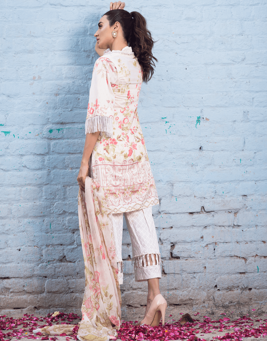 Fabric: Shirt Front Embroidered: 1.00 Yards Shirt Back & Sleeves Printed: 1.90 Yards Digital Printed Chiffon Dupatta: 2.73 Yards Printed Trouser: 2.65 Yards Embroidered Neck Lace – 40”: 01 Piece Embroidered Border Lace – 30”: 01 Piece |