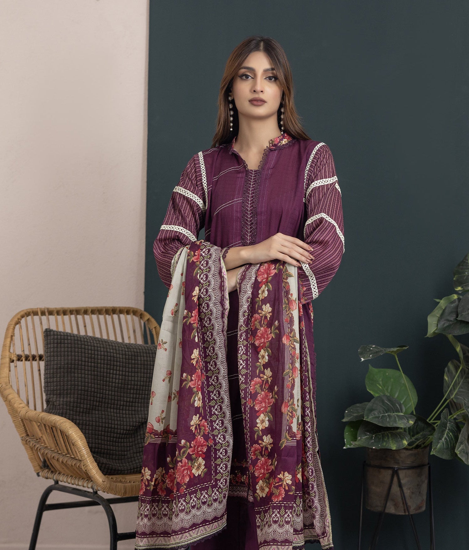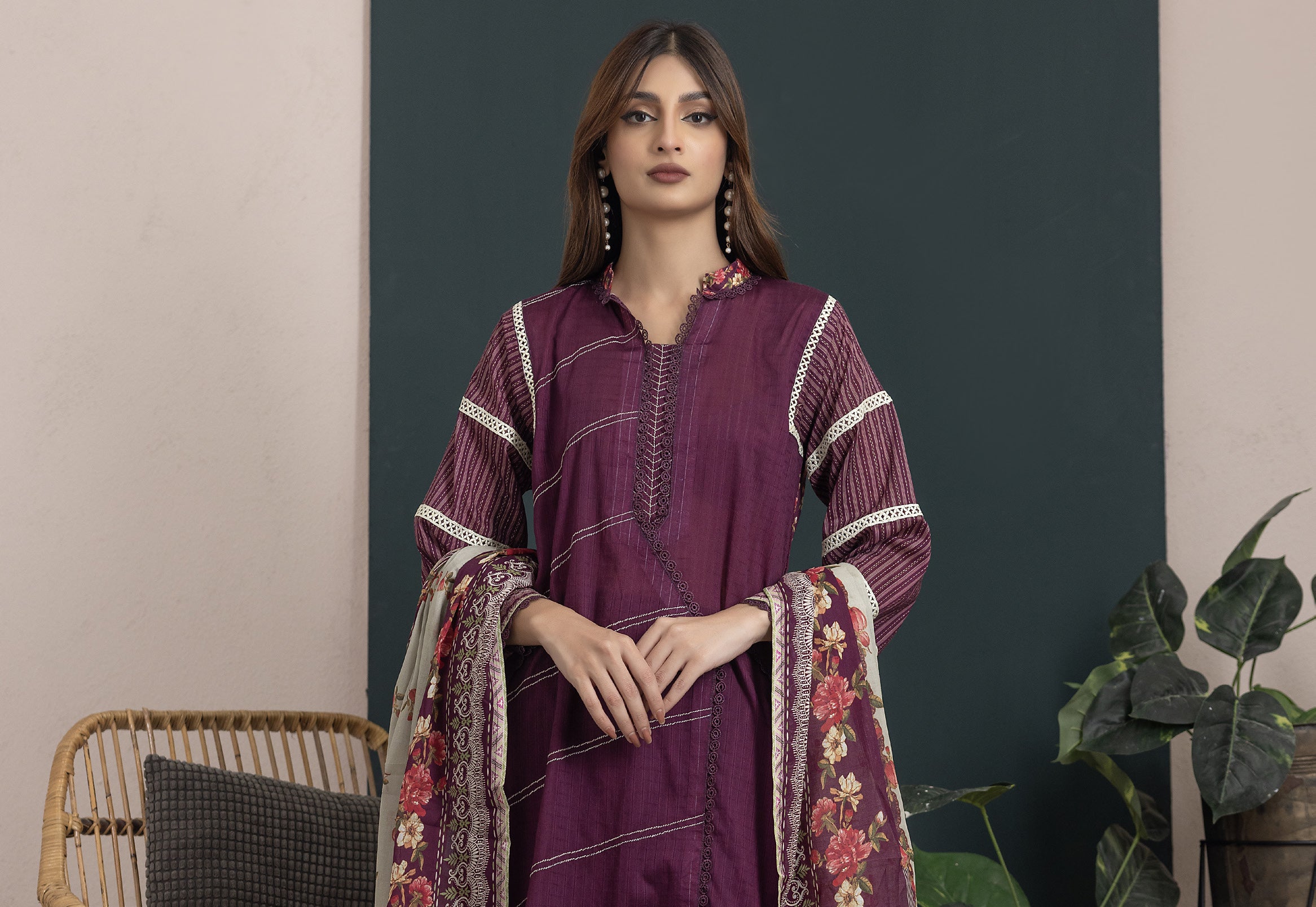 Summary: Embrace effortless style with the Regalia Ninokara Printed Lawn Suit – 11. This three-piece unstitched ensemble features a vibrant printed lawn shirt in a captivating shade of purple. The shirt is crafted from high-quality lawn fabric, ensuring breathability and comfort for everyday wear. The accompanying digital printed lawn dupatta adds a touch of elegance, while the dyed lawn trouser completes the look. This suit is perfect for those who appreciate a blend of traditional aesthetics and contemporary design. The purple hue exudes a sense of grace and sophistication, making it suitable for casual outings, daytime events, or even as a comfortable and chic office wear option. The Regalia Ninokara Printed Lawn Suit – 11 offers a versatile canvas for your personal style, allowing you to accessorize and tailor it to various occasions. Experience the perfect fusion of comfort and style with this stunning Pakistani lawn suit. Authenticity guaranteed - 100% original.