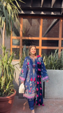 Summary: Embrace winter elegance with the 'Shahnoor' Pakistani suit by Sadaf Fawad Khan. This formal wear masterpiece features a rich Navy Blue Khaddar shirt, a fabric celebrated for its warmth, making it ideal for the Fall/Winter season. The kameez is exquisitely detailed with Turkish embroidery motifs in vibrant pinks and lavenders, creating a striking contrast. This unstitched ethnic outfit offers a sophisticated silhouette perfect for evening functions and wedding festivities. A quintessential example of luxurious Pakistani winter clothing, this dress is designed for those who appreciate detailed craftsmanship.