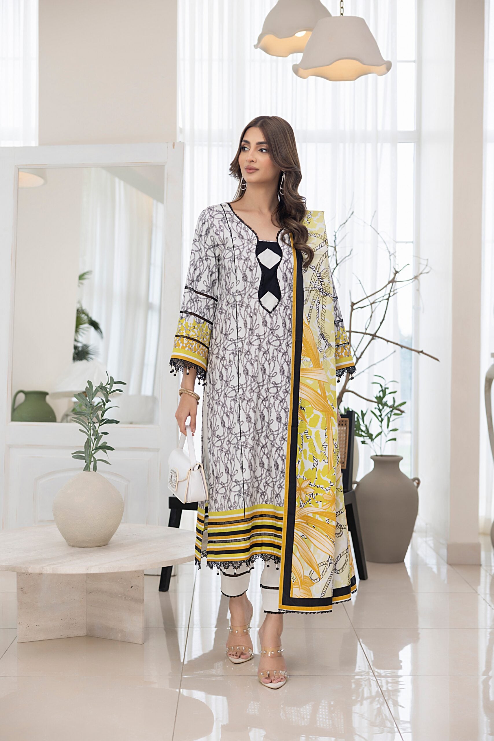 Summary: Introducing the Salina Printed Linen Suit (SPLV1-7), a sophisticated and comfortable choice for your daily wardrobe. This unstitched three-piece suit by Regalia Textiles features a beautiful off-white printed linen kameez, perfect for adding a touch of elegance to your everyday look. The intricate print adds a unique charm without being overwhelming, making it ideal for a variety of occasions. The suit comes with dyed linen bottom fabric and a matching printed linen dupatta, allowing you to create a cohesive and stylish ensemble. Crafted from high-quality linen, this suit offers breathability and comfort, making it perfect for warmer weather. The unstitched format gives you the freedom to tailor the suit to your exact measurements and preferences, ensuring a flattering fit. Embrace effortless style with the Salina Printed Linen Suit. This versatile piece can be dressed up or down, making it a valuable addition to any wardrobe. Shop now and experience the perfect blend of comfort, style, and quality.