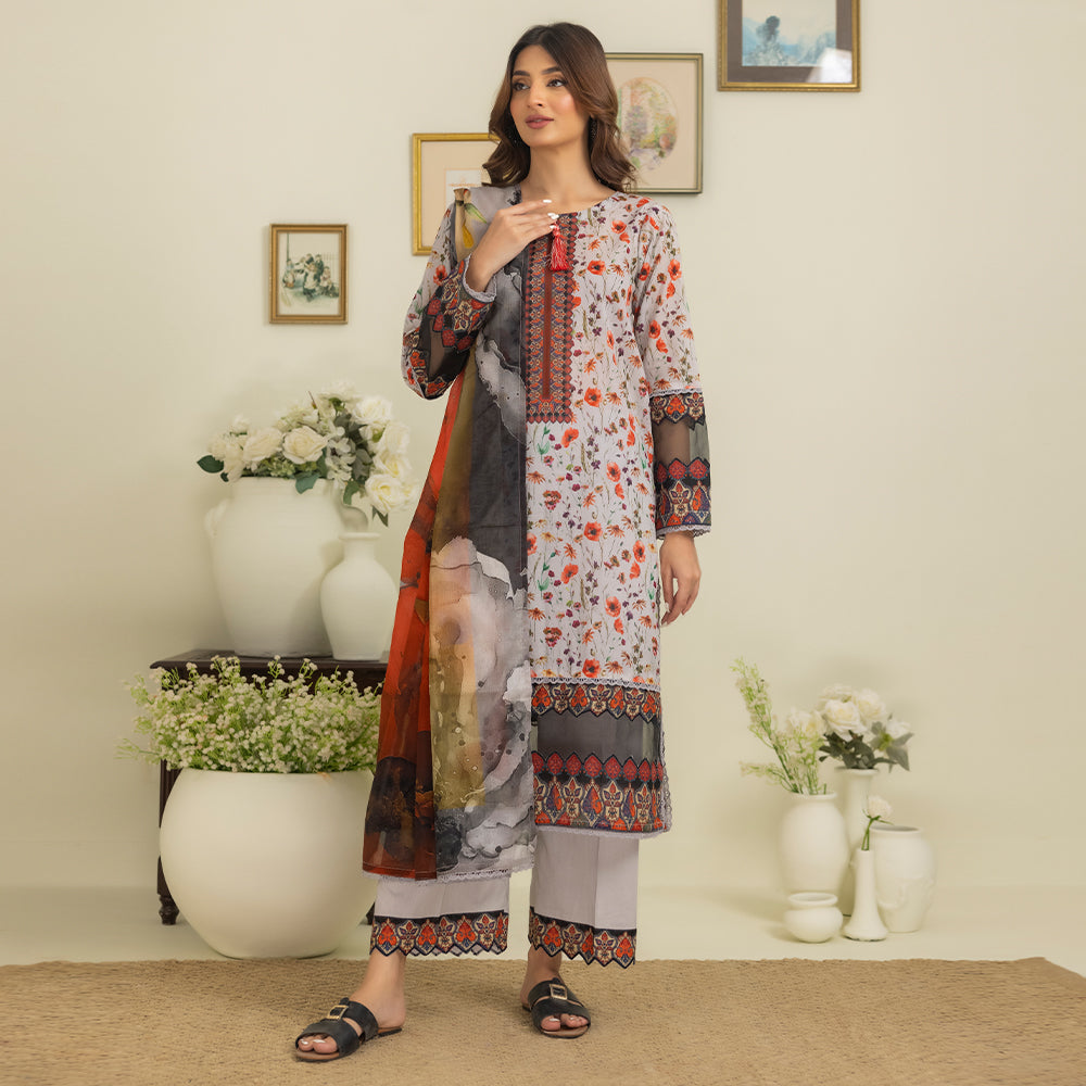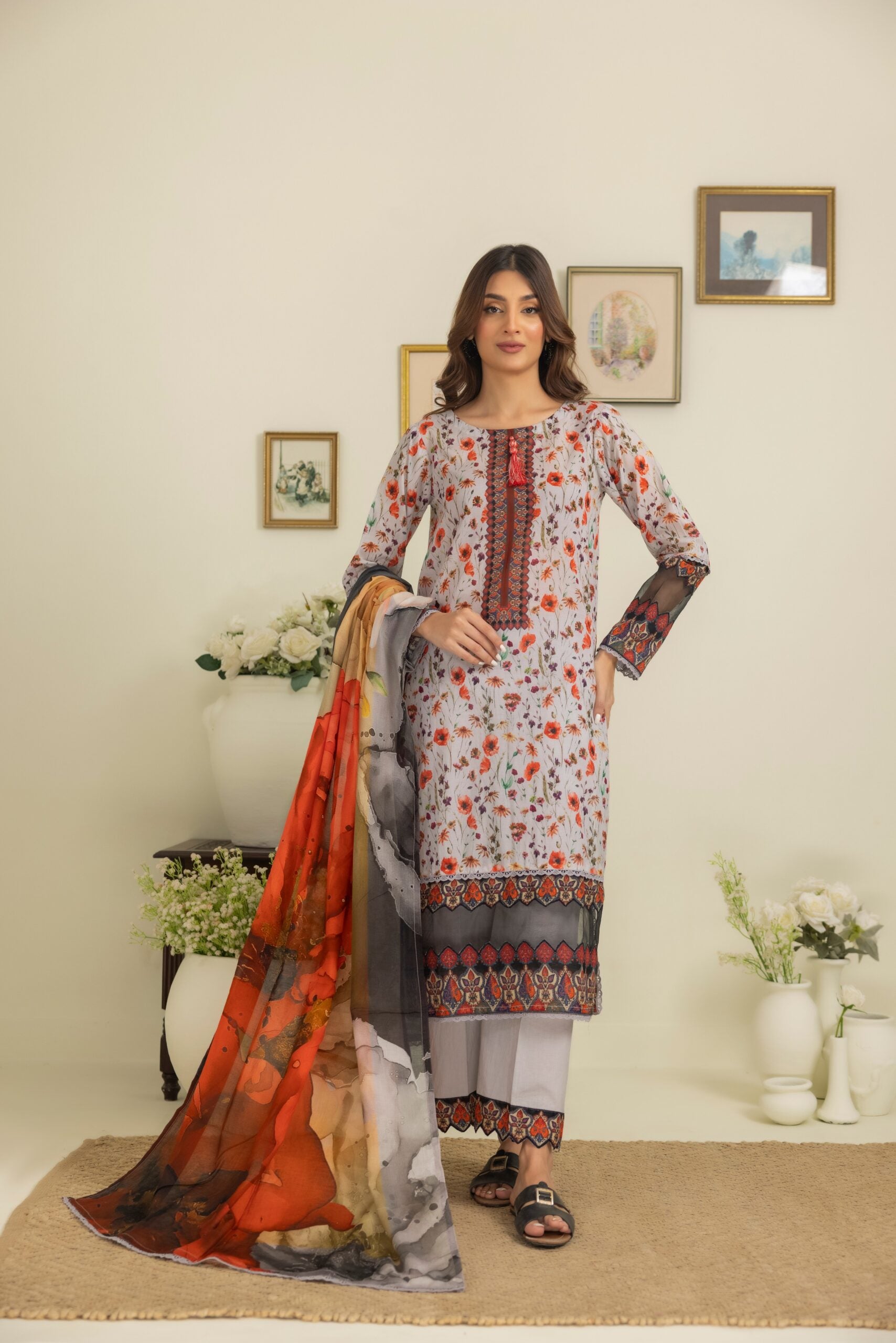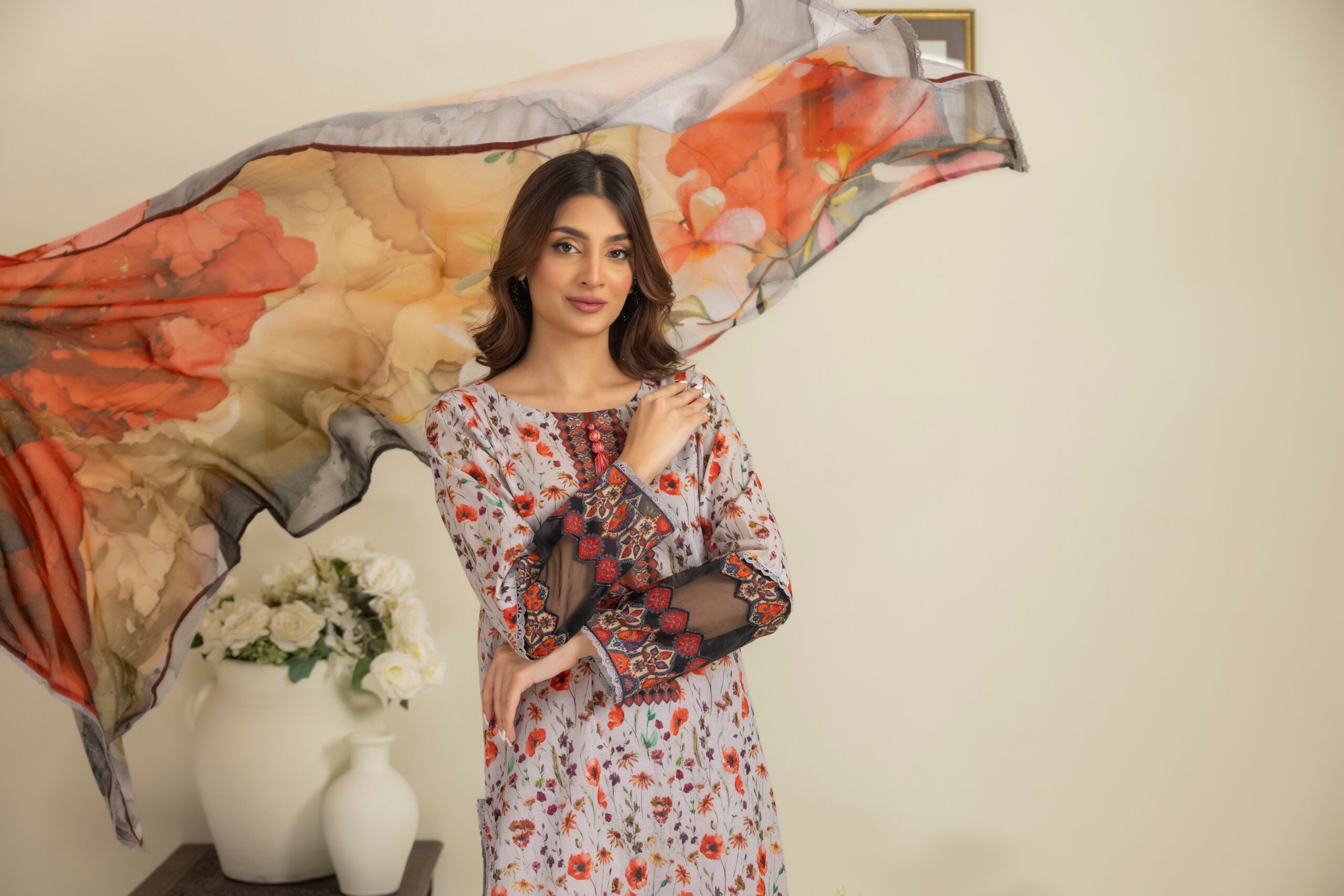 Summary: Embrace effortless summer style with the Salina Printed Mid Summer Cotton Pakistani Suit (SPC3-4). This unstitched three-piece suit from Regalia Textiles features a beautiful off-white printed cotton top, ideal for creating a breezy and comfortable look. The printed design adds a touch of elegance without being overwhelming, making it suitable for casual outings and everyday wear. The dyed cotton bottom fabric complements the top perfectly, offering a comfortable and breathable feel. The printed cotton dupatta adds a splash of color and pattern, completing the ensemble. The unstitched nature of the suit allows you to tailor it to your exact measurements and preferred style. Crafted from high-quality cotton, this suit promises comfort and breathability, making it perfect for warmer weather. The Salina suit is an excellent choice for women who appreciate a blend of style, comfort, and versatility. The 'Mid-Summer' in the name indicates its appropriateness for the hottest months. This suit presents a unique canvas for creating a personalized style statement. Whether you prefer a simple and elegant look or something more elaborate, the Salina suit can be tailored to your individual taste. Guaranteed 100% original, this Pakistani suit offers assured quality and authenticity. Create a chic and effortless summer wardrobe with this delightful ensemble.