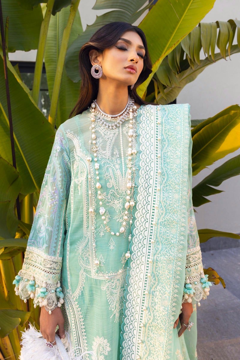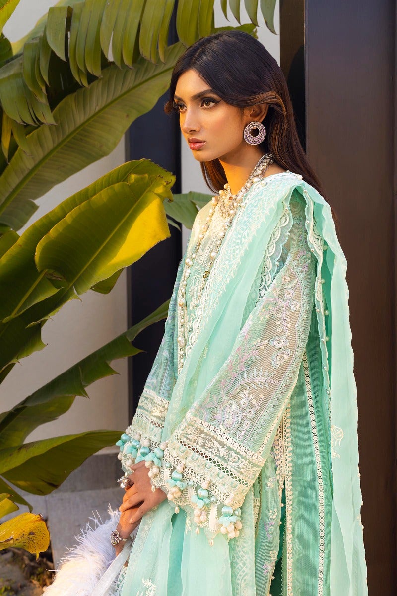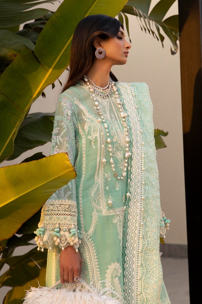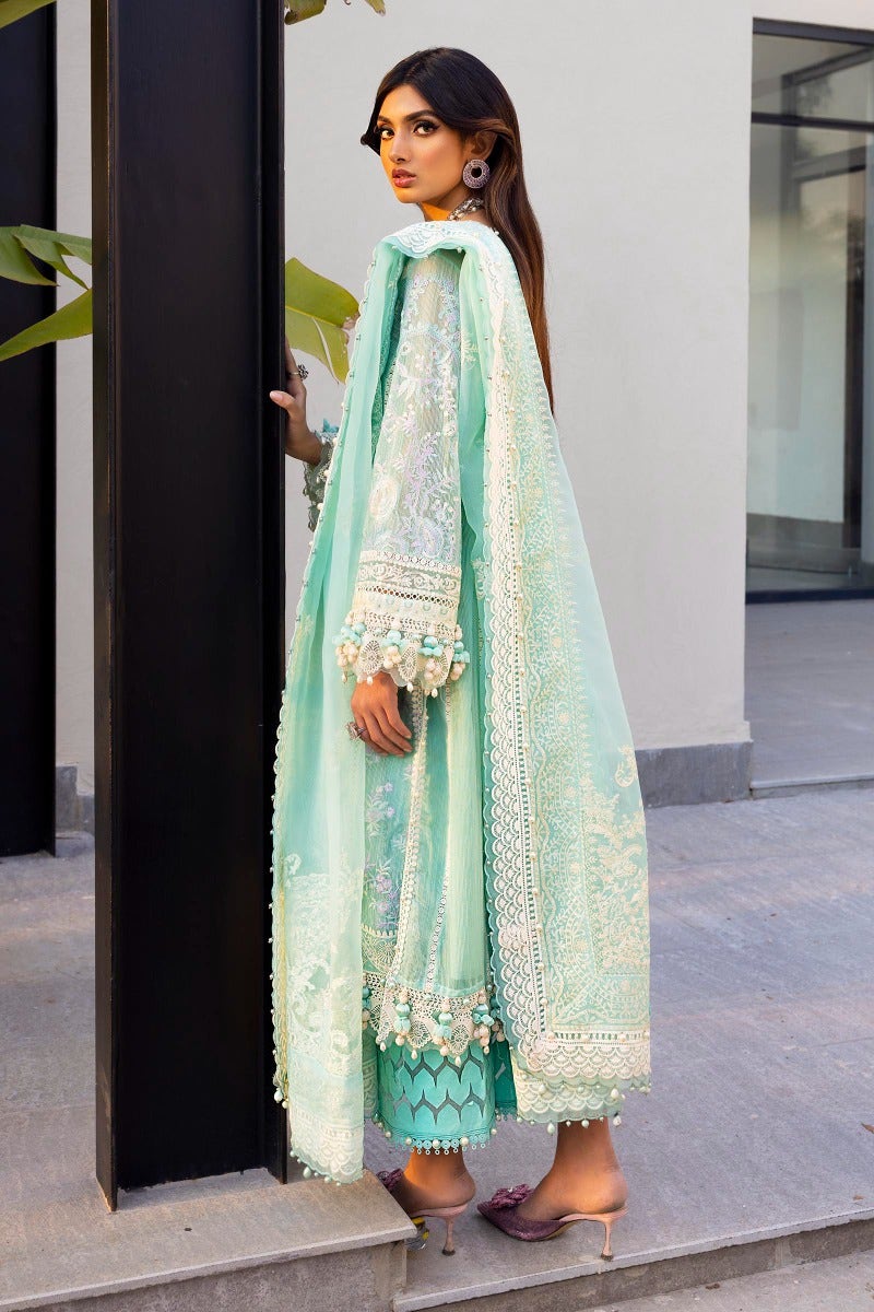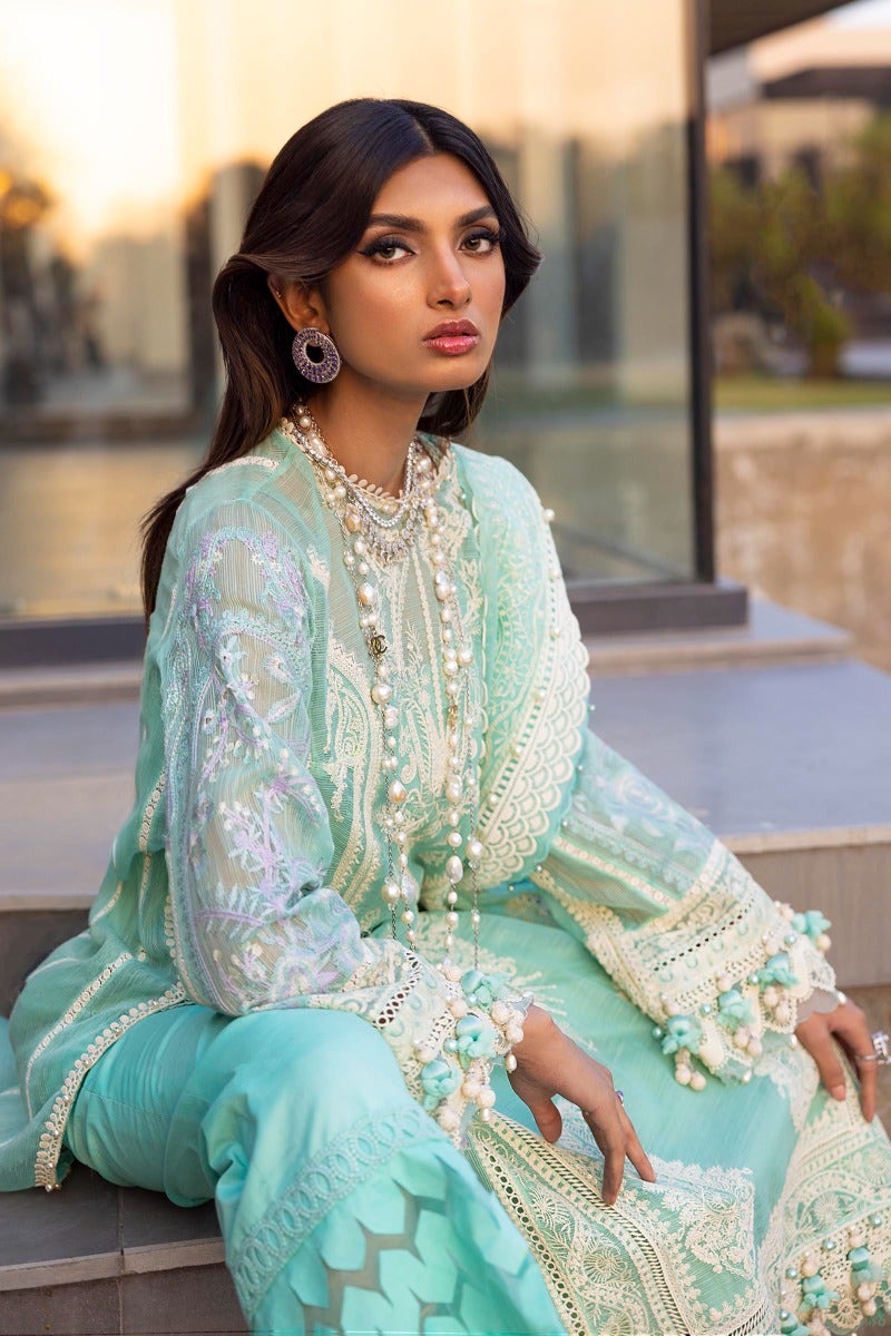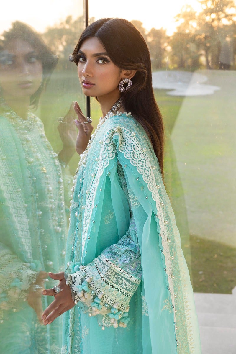 Fabric: A richly detailed design featuring a stunning mélange of dori with pani sequins embroidery in shades of cream, ferozi, and lavender resham. It is paired with matching pants and a ferozi embroidered dupatta on organza. This outfit will quickly become your favourite in your closet.