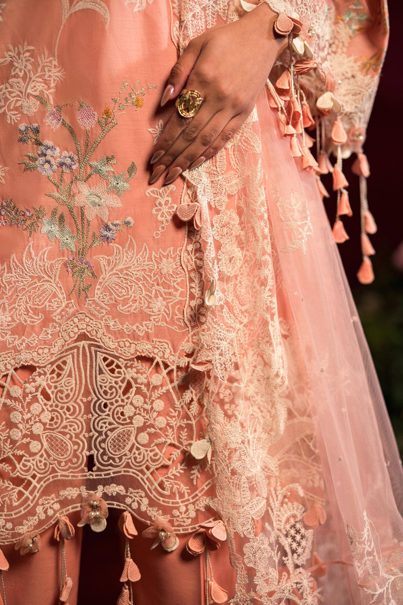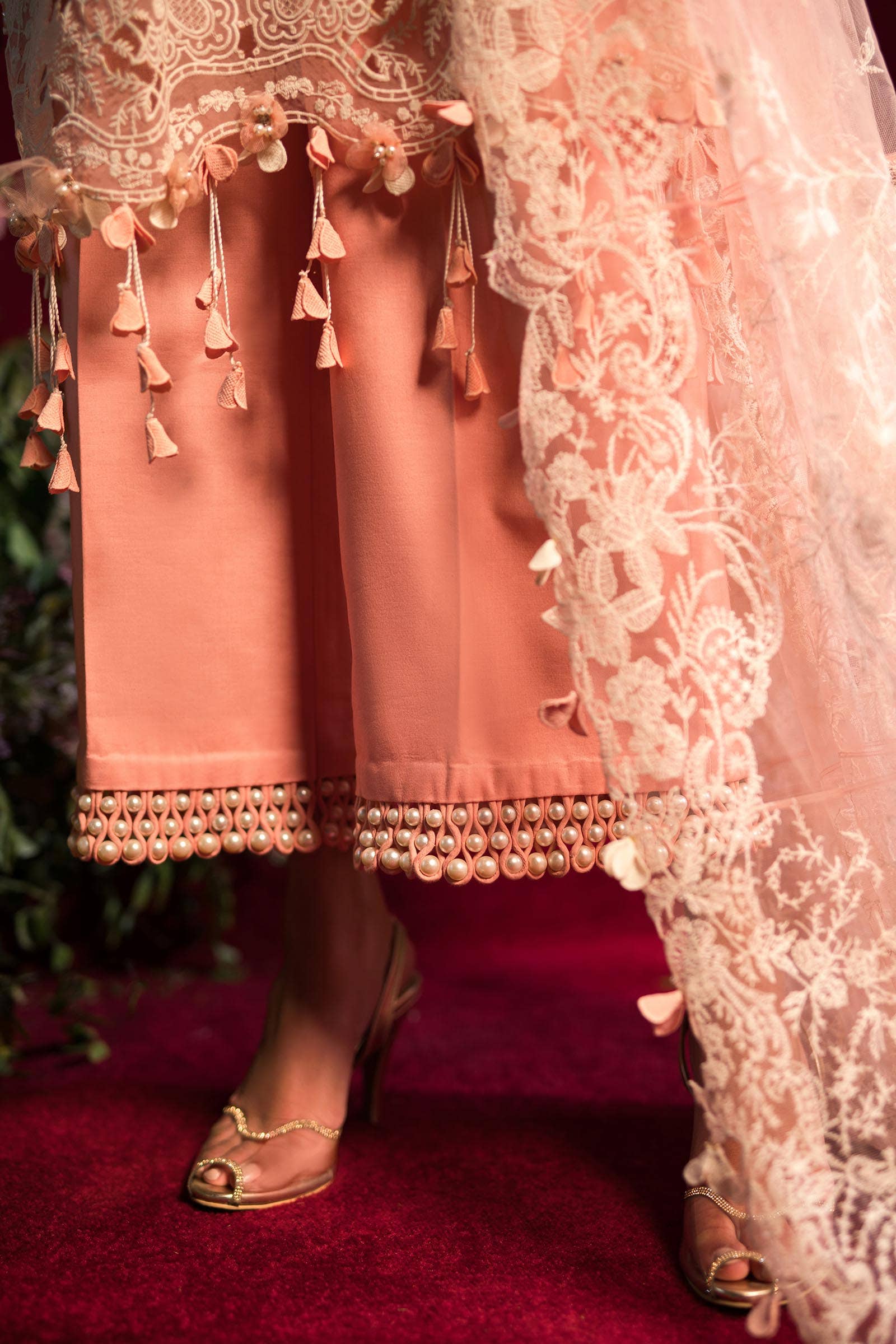 Summary: Embrace timeless elegance with the Sana Safinaz Luxury Lawn Pakistani Suit L241-007A-3CT from their coveted 2024 collection. This exquisite three-piece ensemble features a beautifully crafted peach-colored lawn shirt, adorned with delicate floral embroidery that adds a touch of feminine charm. The shirt is meticulously designed with a focus on lasting beauty, offering a harmonious look that effortlessly transitions from day to evening. Paired with simple yet stylish cotton pants, this suit offers both comfort and sophistication. The highlight of this ensemble is the intricately designed net dupatta, which complements the shirt beautifully and adds a touch of ethereal grace. This unstitched suit allows you to customize the fit and style to your preference, making it a truly personalized piece. Perfect for parties and special occasions, this Sana Safinaz creation is a must-have for any fashion-conscious woman. Experience the luxury and sophistication of Sana Safinaz with this stunning peach-colored Pakistani suit.