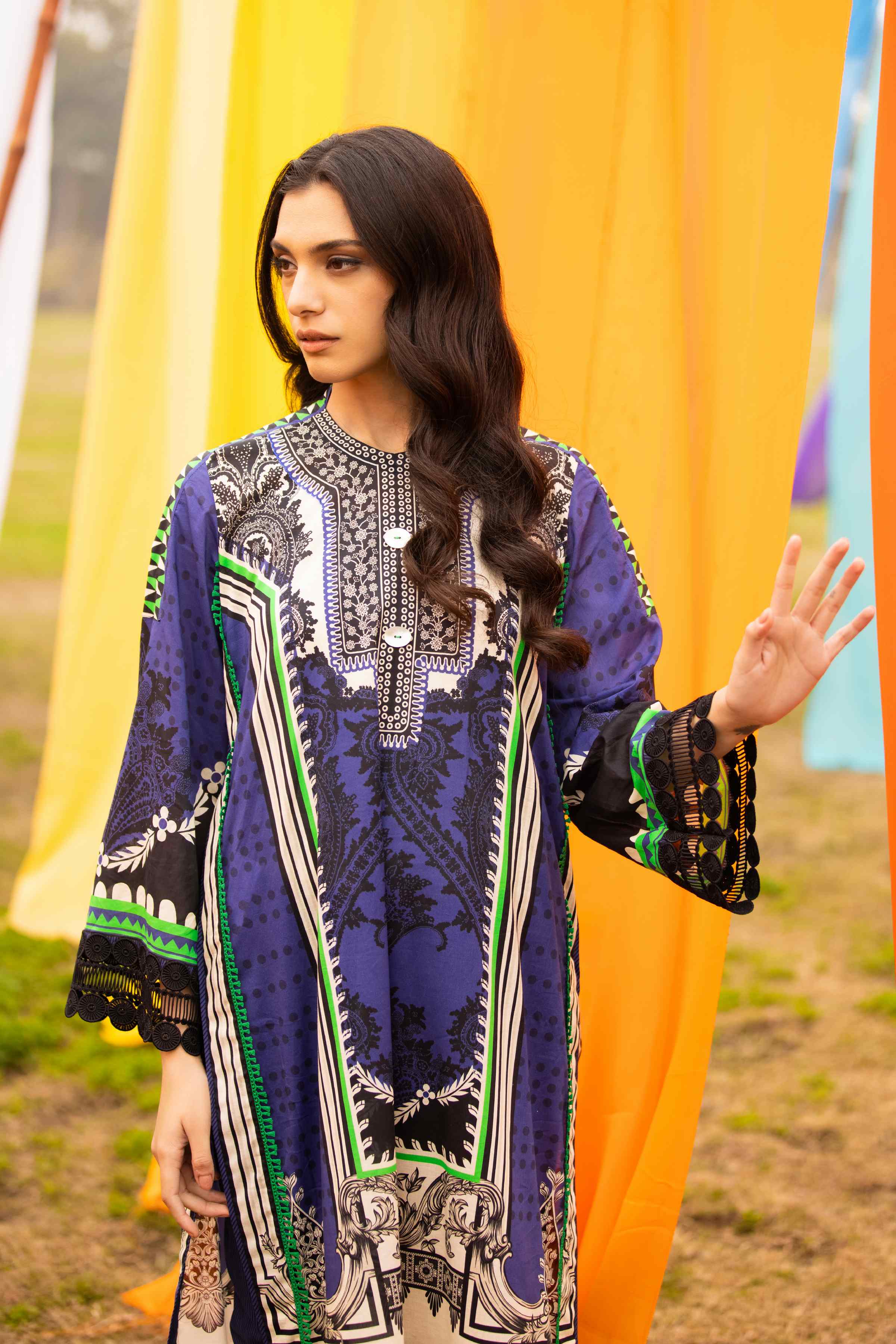Fabric:A midnight blue two-piece suffused in a palmette print is a perfect summer wear. Product Detail Unstitched 2-Piece Shirt Printed Lawn Shirt 3m Color: Dark Blue Fabric: Lawn Trouser Dyed Cotton Trouser 2.5m Color: Dark Blue Fabric: Cotton Style Note Accentuate the hints of color in this sublime outfit with matching accessories. 1. Medium Iron 2.Do not use bleach 3. Cold machine wash 4. Less exposure of damp fabric to strong sunlight |
