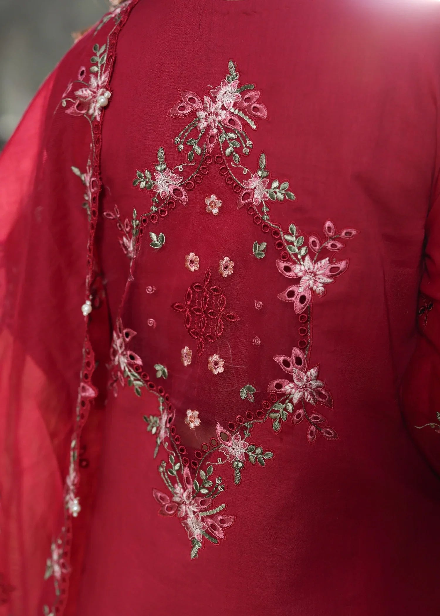 Summary: Embrace festive elegance with this stunning Floral Fuchsia Pakistani Suit from Sardinia. Beautifully crafted from premium Lawn fabric, this summer outfit is both breathable and luxurious. The kameez features exquisite Chikankari embroidery on the front panels and sleeves. The design is elevated with delicate hand-work on the organza neck patch and borders, adding a sophisticated touch. The vibrant magenta hue makes this ethnic wear a standout choice for formal gatherings, Eid celebrations, or as a sophisticated wedding guest dress. This unstitched Pakistani dress promises grace and style for any special occasion.