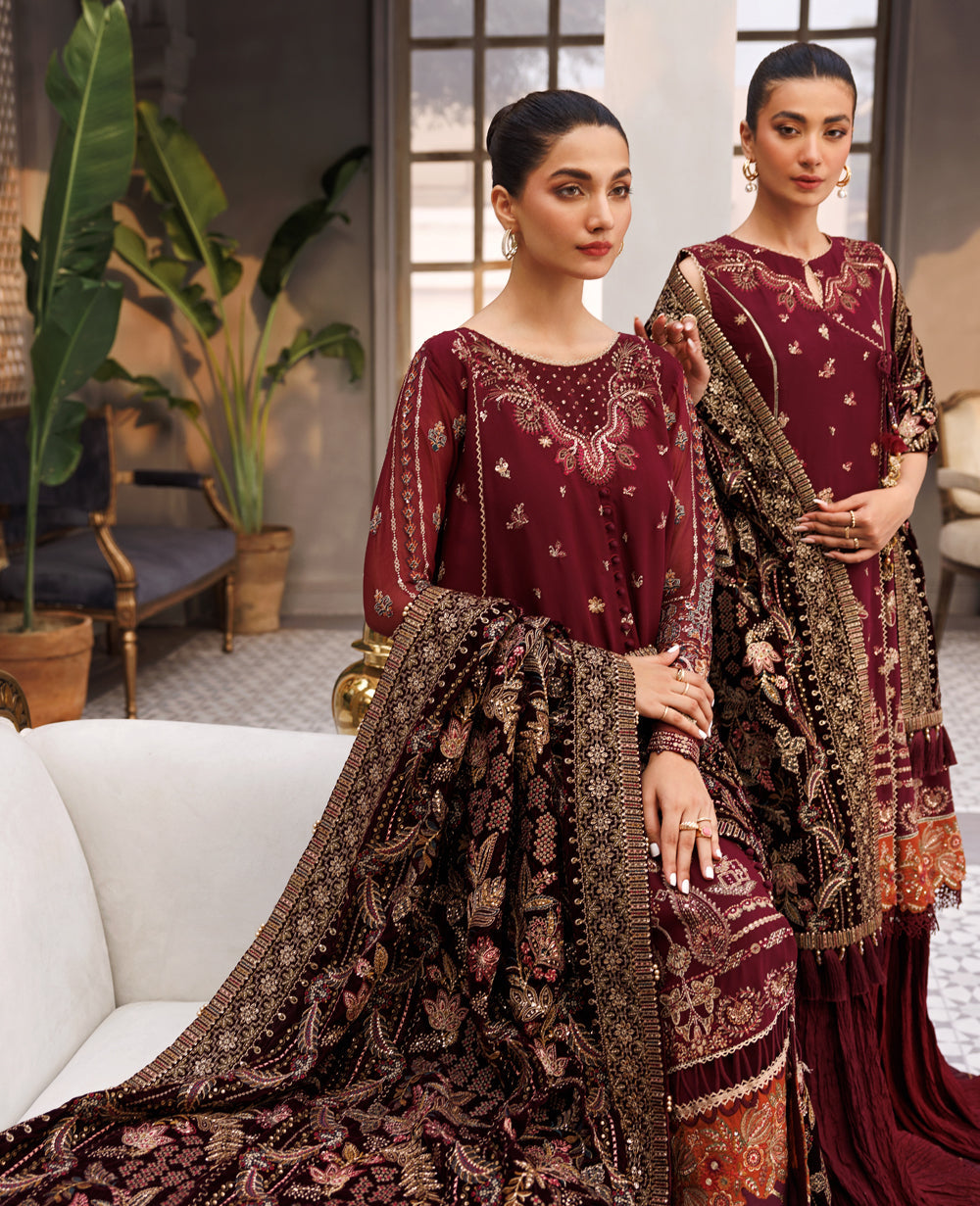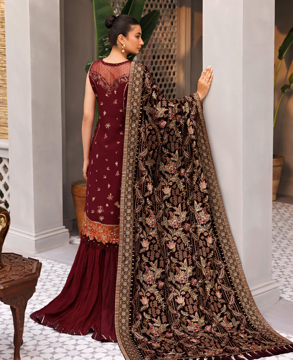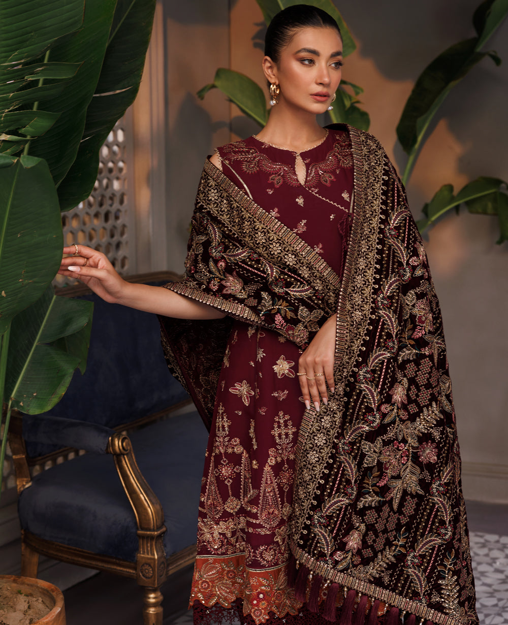 | Fabric: EMBROIDERED CHIFFON FRONT 49 INCHES EMBROIDERED CHIFFON BACK 49 INCHES EMBROIDERED CHIFFON SLEEVES 24 INCHES EMBROIDERED ORGANZA FRONT & BACK PATCH EMBROIDERED ORGANZA SLEEVES PATCH EMBROIDERED ORGANZA FRONT NECKLINE PATCH EMBROIDERED ORGANZA BACK NECKLINE PATCH EMBROIDERED VELVET SHAWL 2.50 YARDS EMBROIDERED VELVET SHAWL PATCH RAWSILK TROUSER 2.50 YARDS |