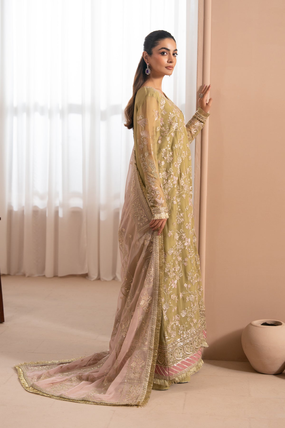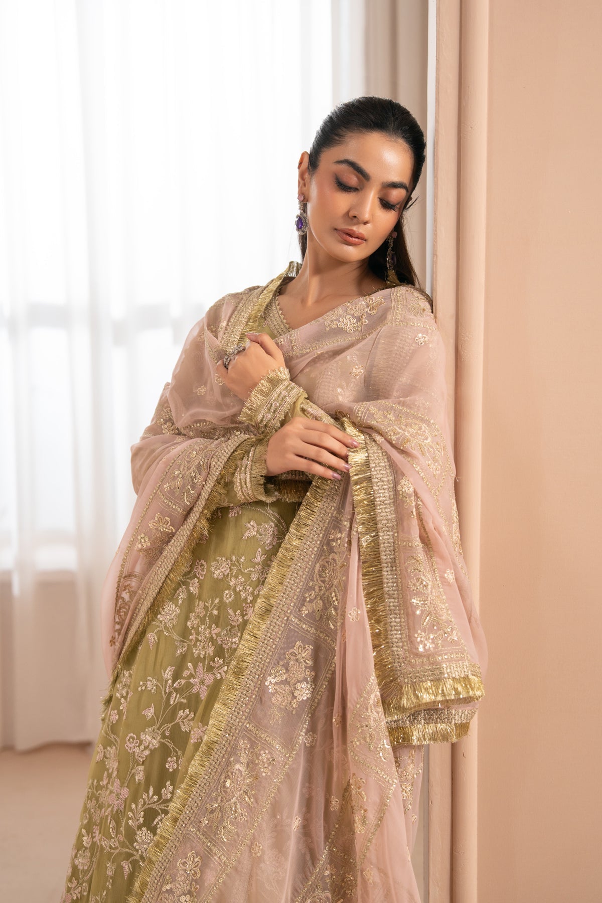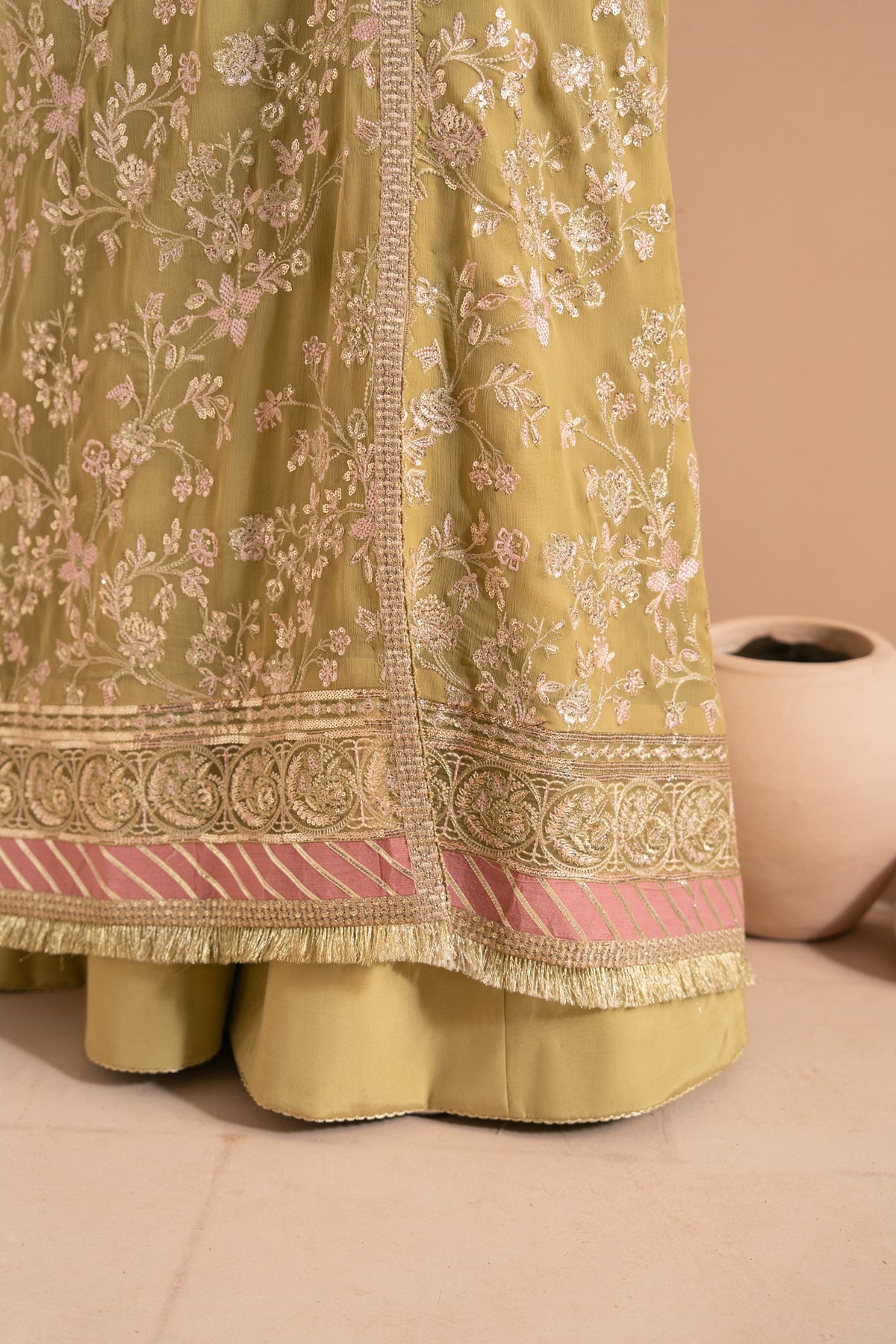 Summary: Discover elegance with this stunning olive Pakistani suit, a perfect addition to your summer festive wardrobe. Crafted from sheer chiffon, this beautifully embroidered Pakistani dress offers both comfort and regal charm. The intricately detailed long shirt features exquisite floral embroidery, making it an ideal choice for a Mehndi ceremony, evening formal events, or wedding wear. The matching chiffon dupatta drapes gracefully, adding traditional luxury to this ethnic wear ensemble. Designed as a versatile festive clothing piece, this luxury formal outfit blends classic aesthetics with grace. Shop online to elevate your Eid or wedding guest collection today!
