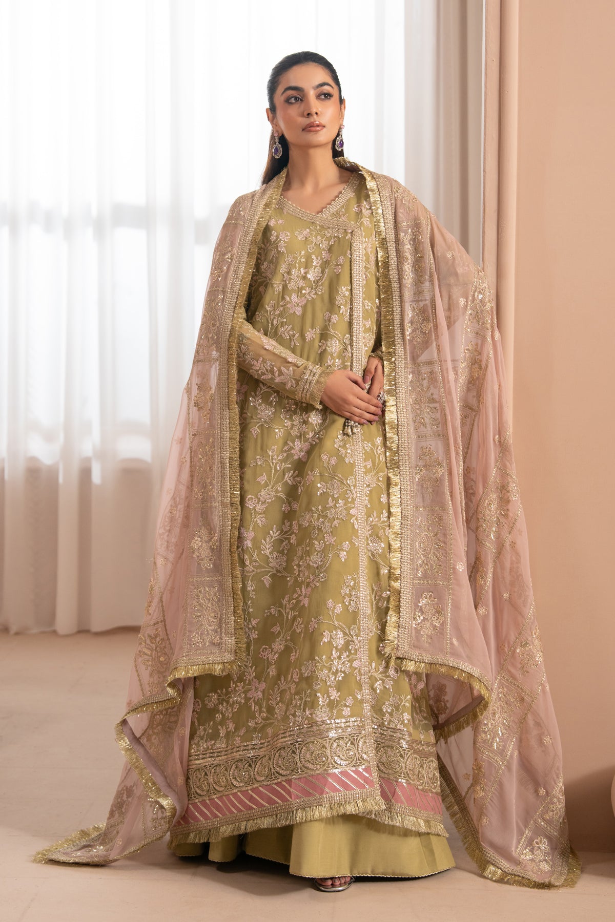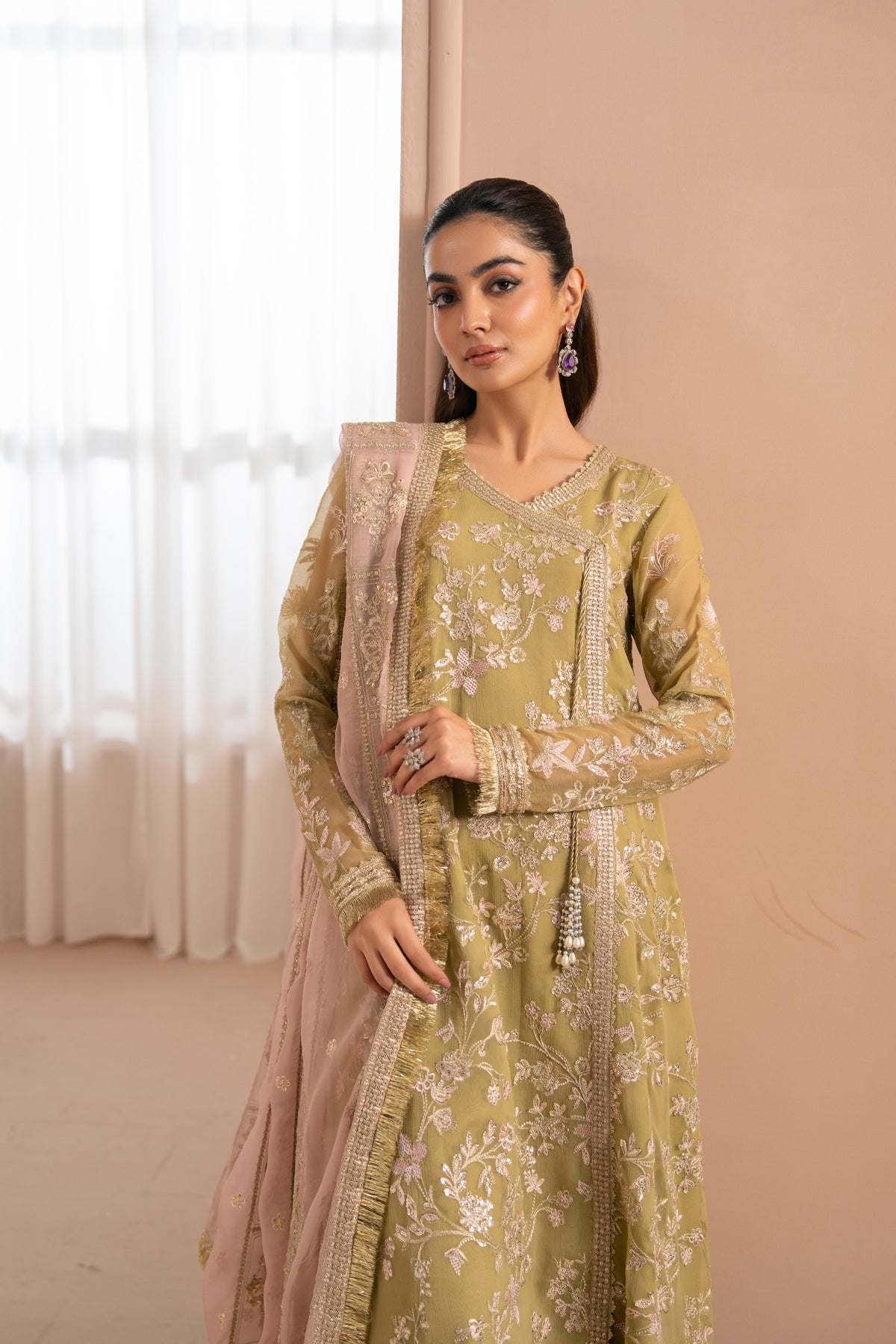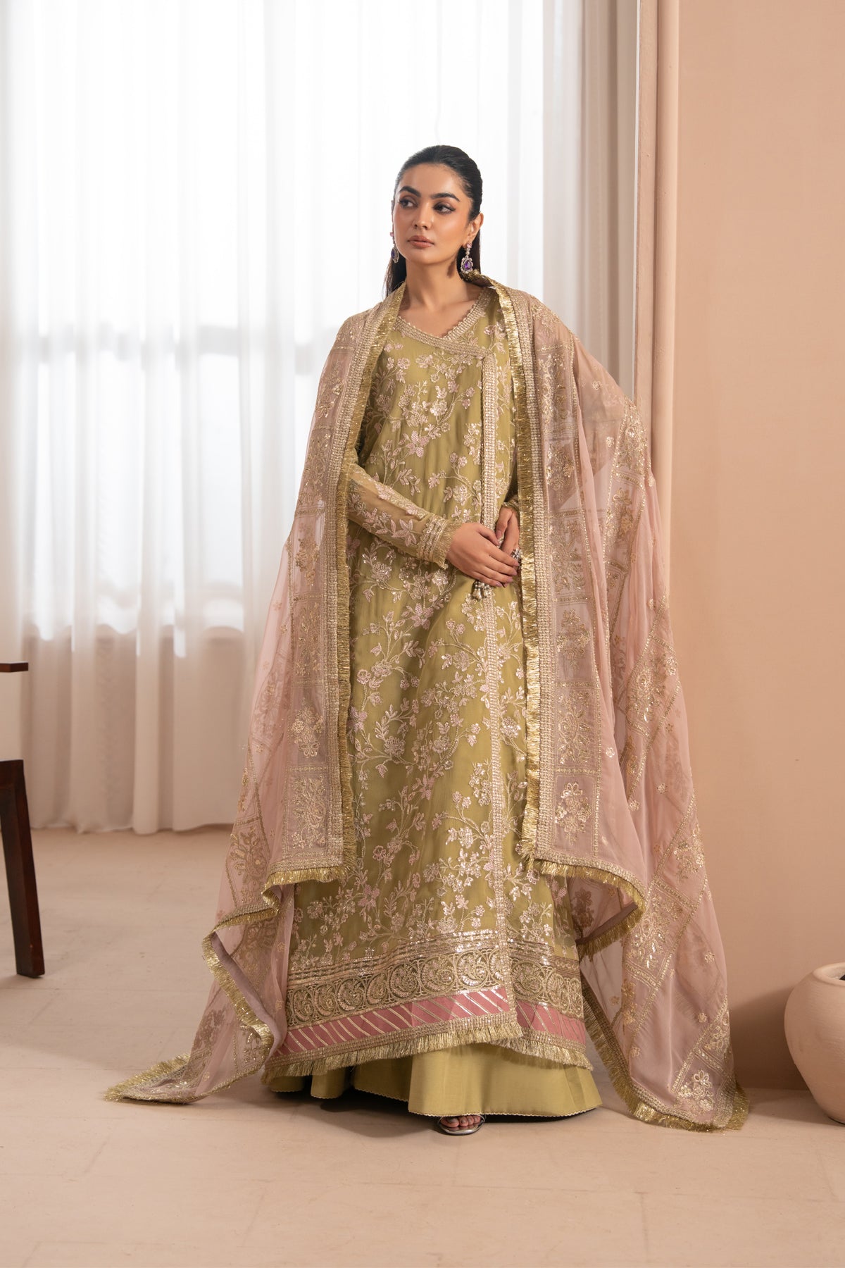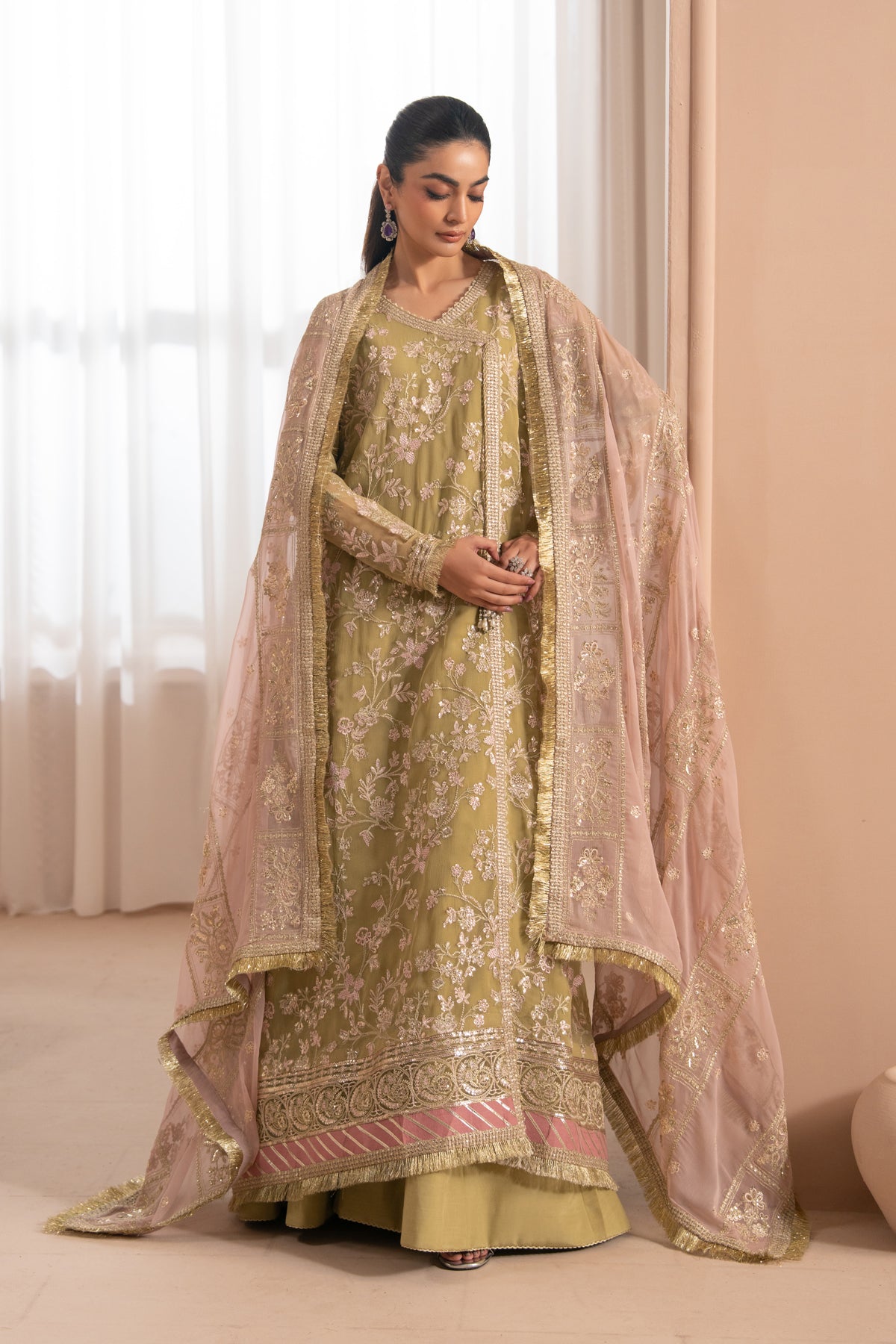 Summary: Discover elegance with this stunning olive Pakistani suit, a perfect addition to your summer festive wardrobe. Crafted from sheer chiffon, this beautifully embroidered Pakistani dress offers both comfort and regal charm. The intricately detailed long shirt features exquisite floral embroidery, making it an ideal choice for a Mehndi ceremony, evening formal events, or wedding wear. The matching chiffon dupatta drapes gracefully, adding traditional luxury to this ethnic wear ensemble. Designed as a versatile festive clothing piece, this luxury formal outfit blends classic aesthetics with grace. Shop online to elevate your Eid or wedding guest collection today!