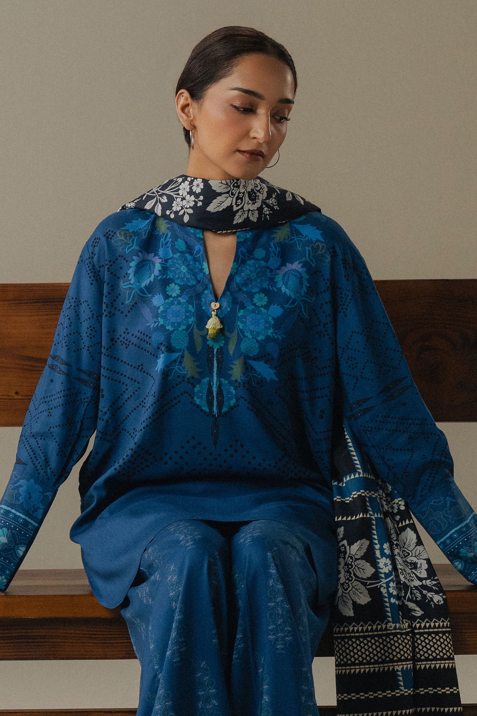 Summary: Embrace winter elegance with this stunning blue Pakistani suit from Zara Shahjahan's 'Coco Prints Winter Edit'. The kameez is crafted from high-quality linen, making this winter outfit both comfortable and chic. It features a captivating digital print inspired by traditional Bandhani and Kalamkari art in rich shades of cobalt blue. This unstitched ethnic wear provides the perfect canvas to create a sophisticated look. As a premier Pakistani dress, its breathable yet warm linen fabric is ideal for the Fall/Winter season, making it perfect for formal day events or elevated daily outings.
