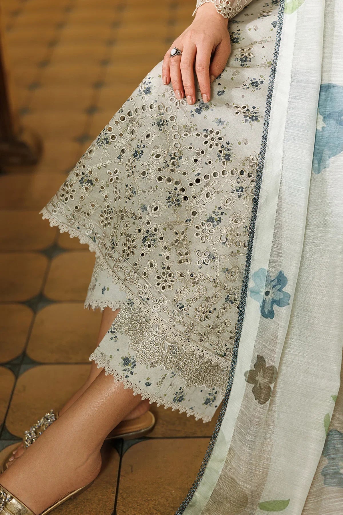 Summary: Elevate your summer wardrobe with this exquisite Off White Pakistani Lawn Suit from the Zarif Amani Eid collection. Crafted from premium, breathable lawn fabric, this kameez features a sophisticated digital floral print accented with intricate schiffli (cutwork) embroidery on the sleeves and hem, offering a touch of festive luxury. Perfectly tailored for the season, this ensemble is paired with a soft, textured dupatta that drapes elegantly, making it an ideal choice for Eid celebrations, summer parties, or semi-formal day events. Embracing the essence of traditional Pakistani ethnic wear with modern grace, this outfit promises both comfort and style. Shop this stunning summer festive dress online to experience timeless casual elegance.