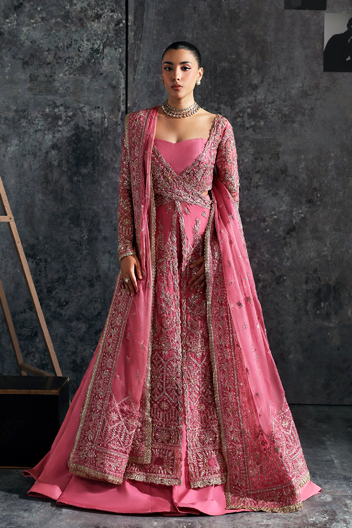 Summary: Embrace regal elegance with the Zarposh Seraphine 'Lilium' Pakistani suit. This stunning festive formal is rendered in a beautiful shade of pink on delicate organza fabric. The unstitched ensemble features meticulously hand-embellished front panels, body, and sleeves, creating a breathtaking silhouette. The airy organza makes this luxury outfit perfect for Spring/Summer weddings and grand celebrations. This ethnic wear masterpiece, paired with a matching embroidered organza dupatta and raw silk trousers, is the epitome of Pakistani formal wear, ideal for making a lasting impression at any wedding or festive event.