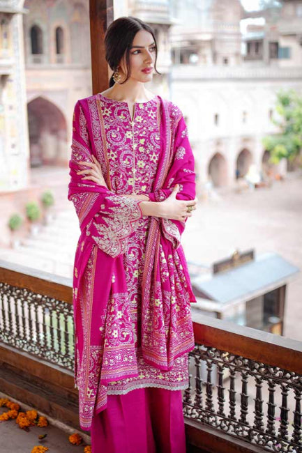 Zellbury Winter Collection  2023 – Embroidered Shirt Shalwar Dupatta - Cerise Pink - Khaddar Suit - WUW22E30092