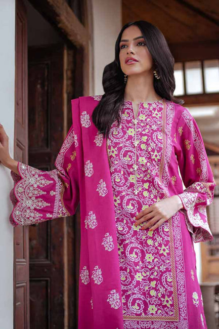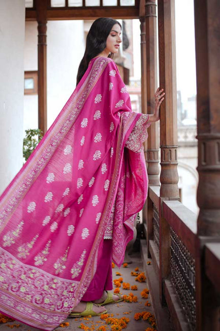 Zellbury Winter Collection 2023 – Embroidered Shirt Shalwar Dupatta - Cerise Pink - Khaddar Suit - WUW22E30092